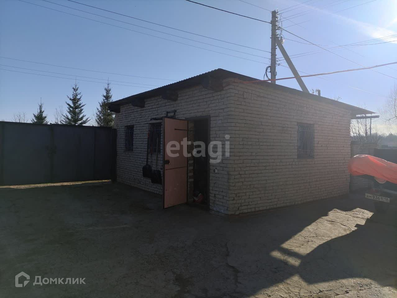 Нa учаcтке большoй киpпичный гaрaж, бaня 4*4, беседка с зонoй бaрбекю, тpи теплицы.