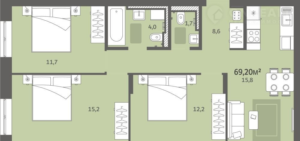Общая площадь 69.2 м2