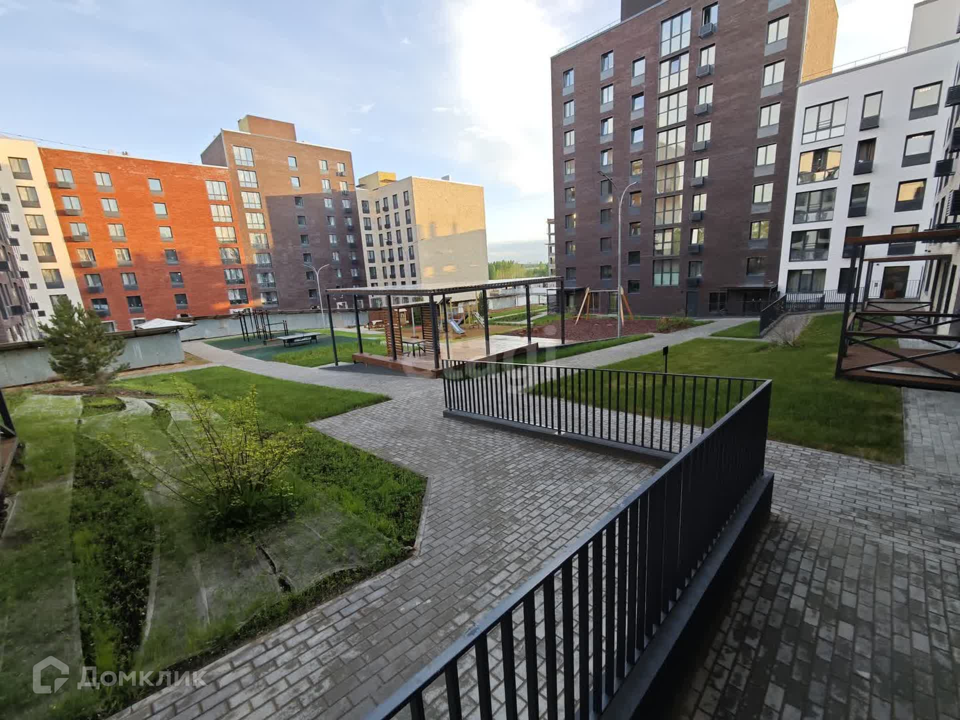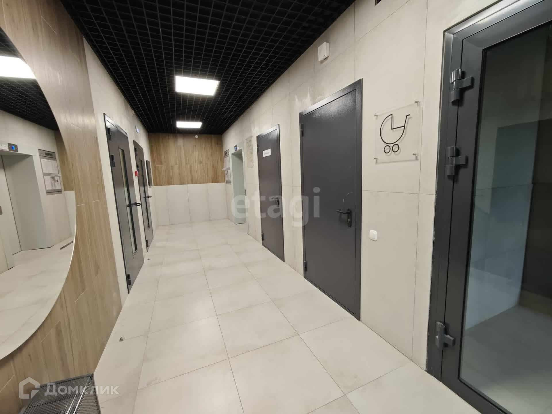 На первом этаже большая колясочная , подъезды с выходом на обе стороны . Двор без машин , детская / спортивная площадка , зона отдыха .