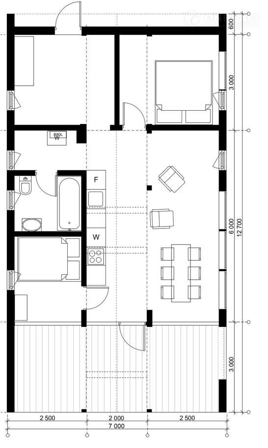 В доме есть полностью укомплектованный санузел (ванна, унитаз, раковина), кухонная зона с варочной панелью, зал, коридор,  две спальни и открытая веранда. Отопление за счет электрических теплых полов. Панорамное остекление, позволяющее наслаждаться видом на воду.