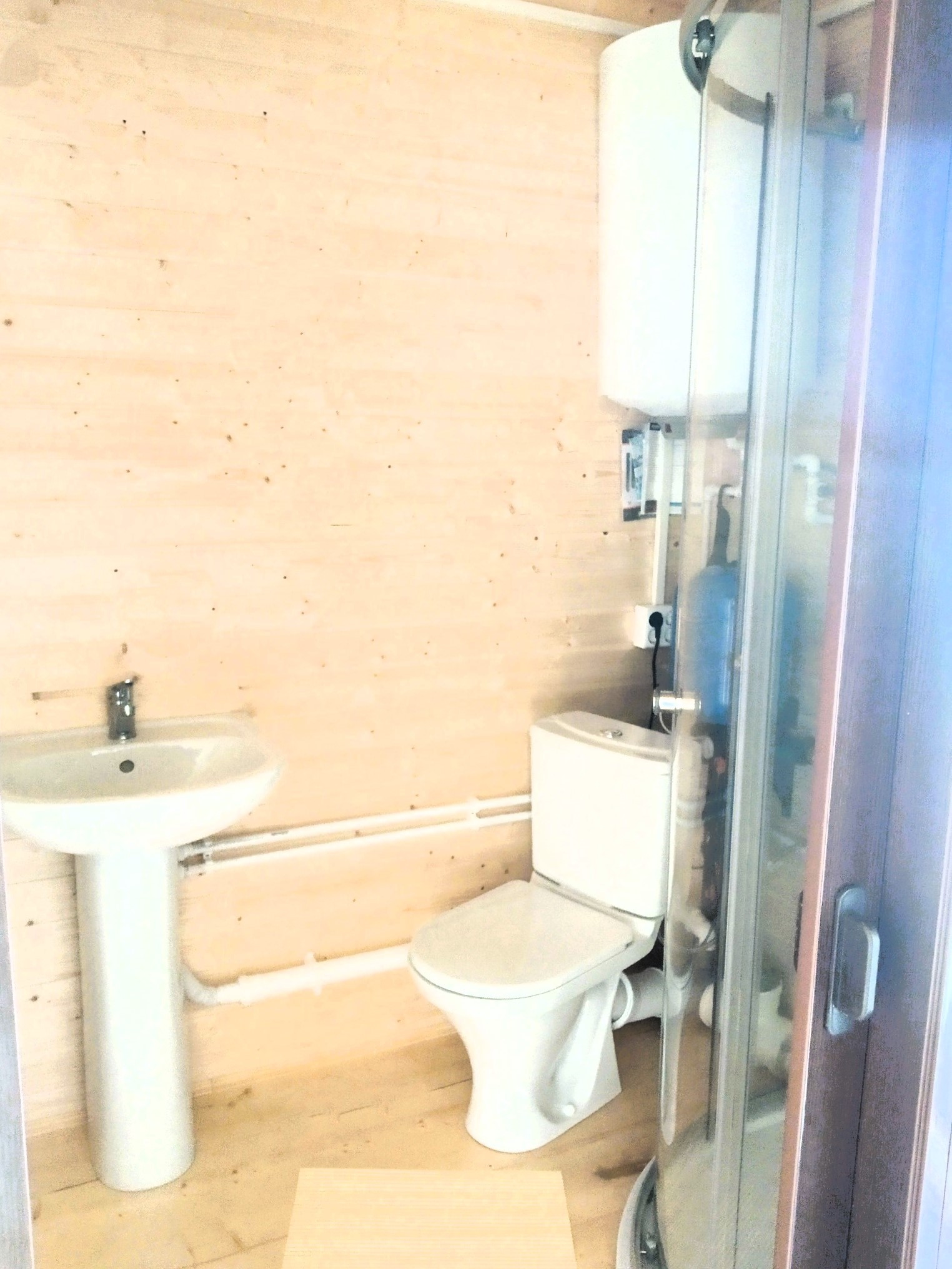 Полностью достроен, все удобства, как в городской квартире, электричество 15 кВт, вода - своя скважина, канализация – септик. Всё подключено. В доме четыре комнаты + комната с удобствами( душевая кабина, унитаз, раковина).Участок полностью огорожен, круглогодичный подъезд, дороги зимой чистят.