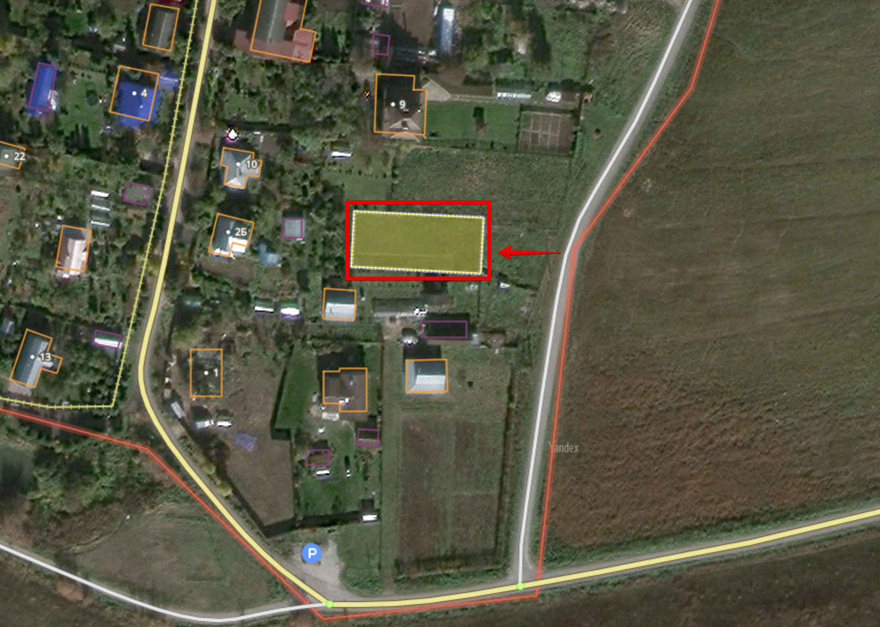По факту используемая площадь 14 соток - на 4 сотки больше за счет пустой земли между участком и дорогой. Эта территория огорожена и последние 15 лет никем не используется.