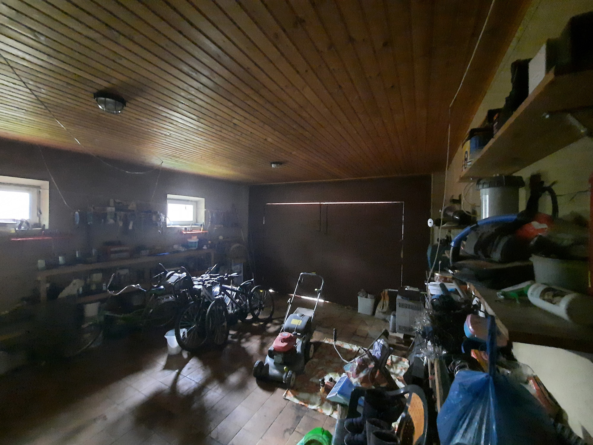 Цоколь 93 кв.м.  : бассейн, сауна, тренажерный зал, котельная и несколько подсобных помещений.