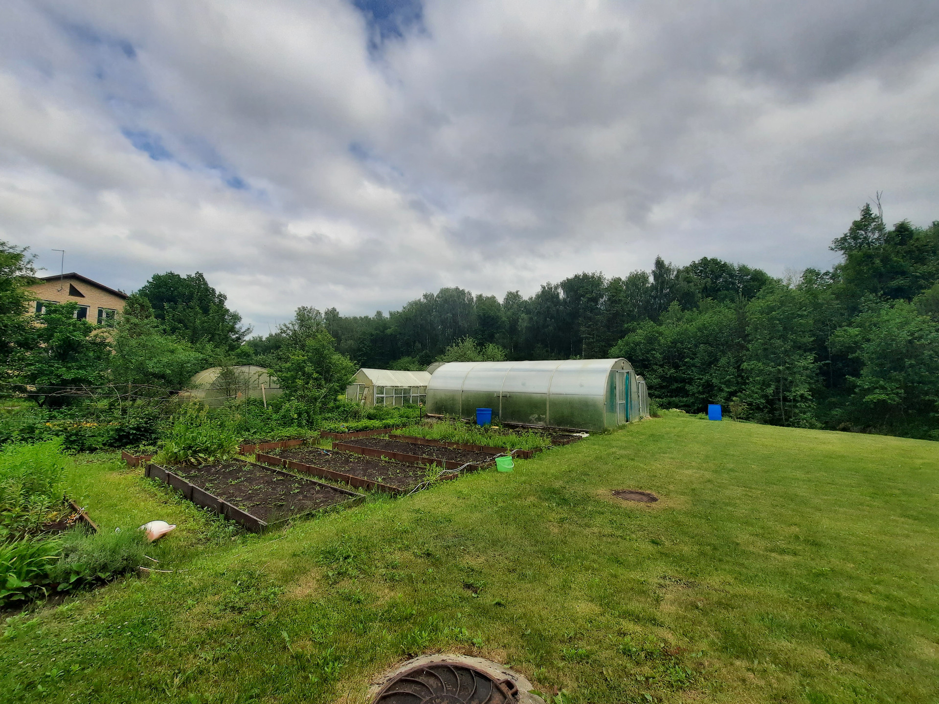 На участке много плодовых деревьев и кустарников, 2 теплицы, помещения для содержания домашней птицы.