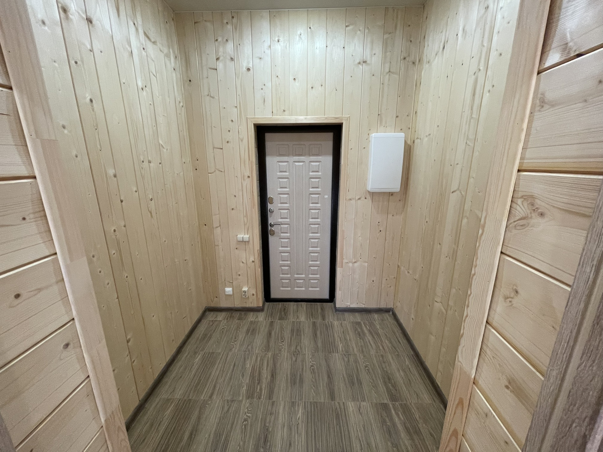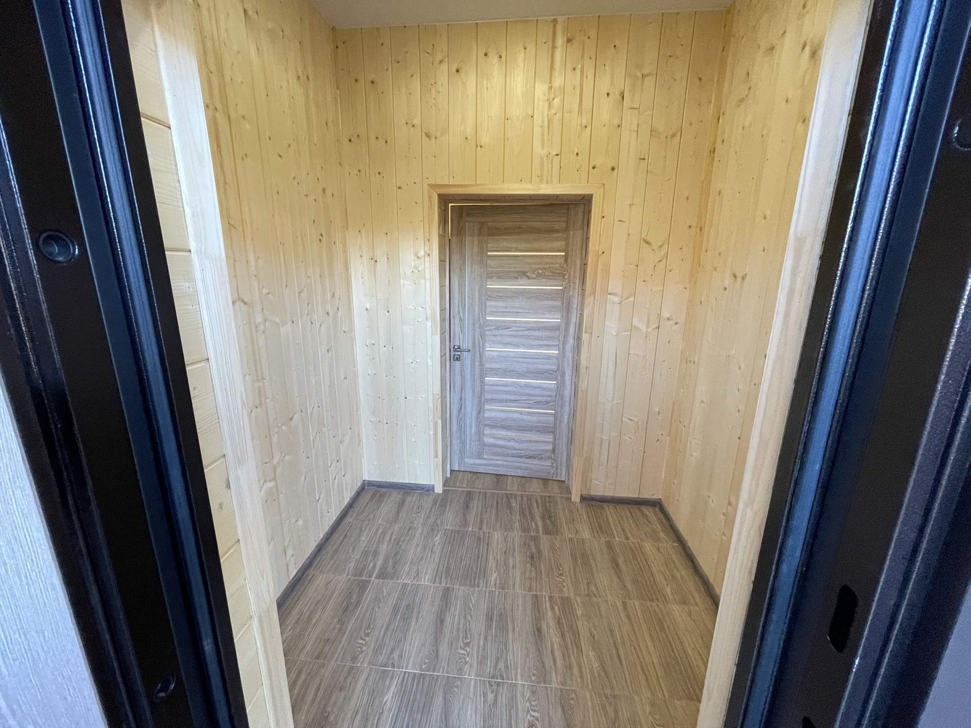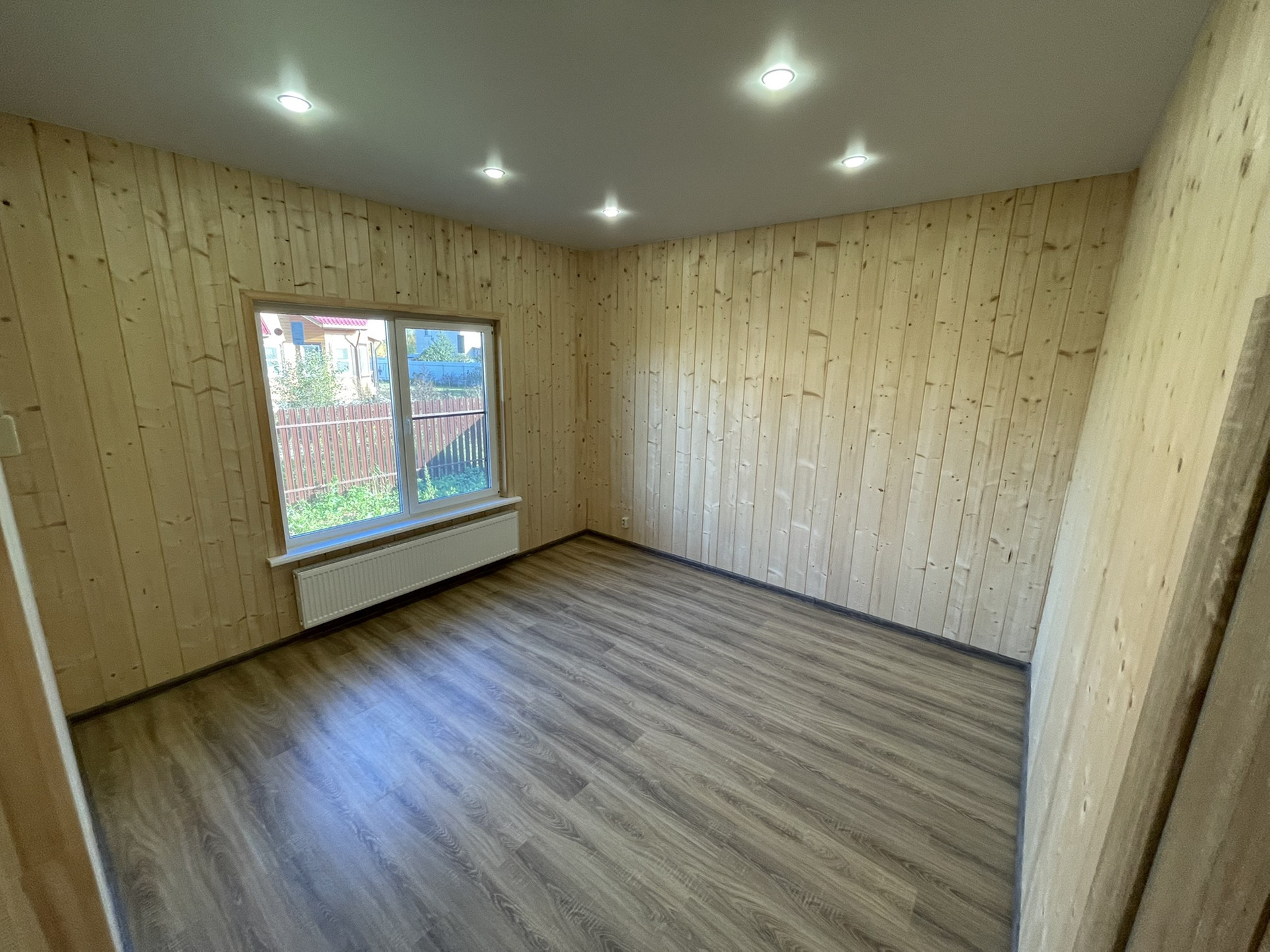 Внутренняя отделка: имитация бруса 14см ,ламинат 33 класс,матовые натяжные потолки.