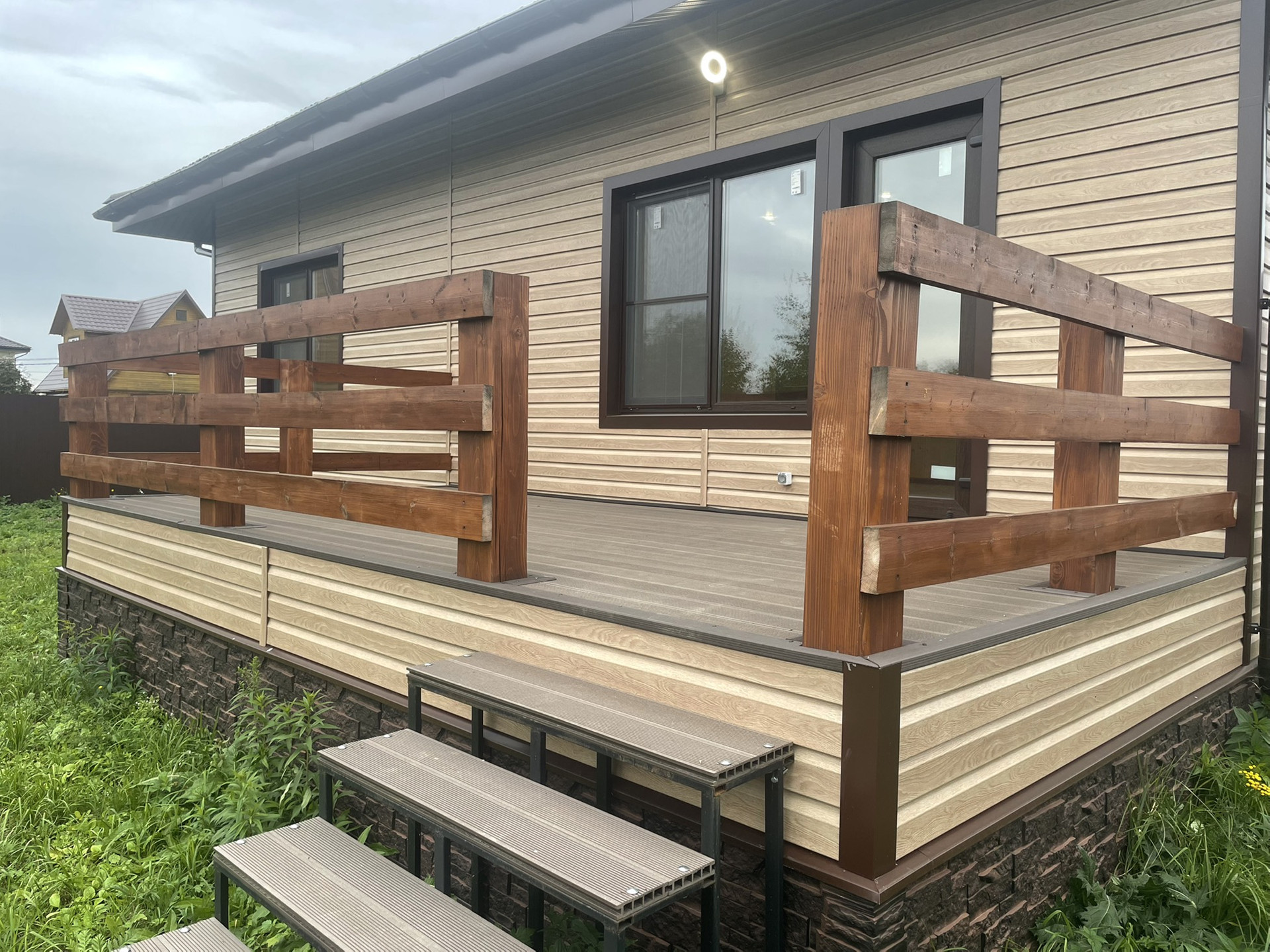 Фурнитура и подшивка кровли: GrandLine(Все откосы на окнах и наружные углы выполнены из металла 0,45 стали)