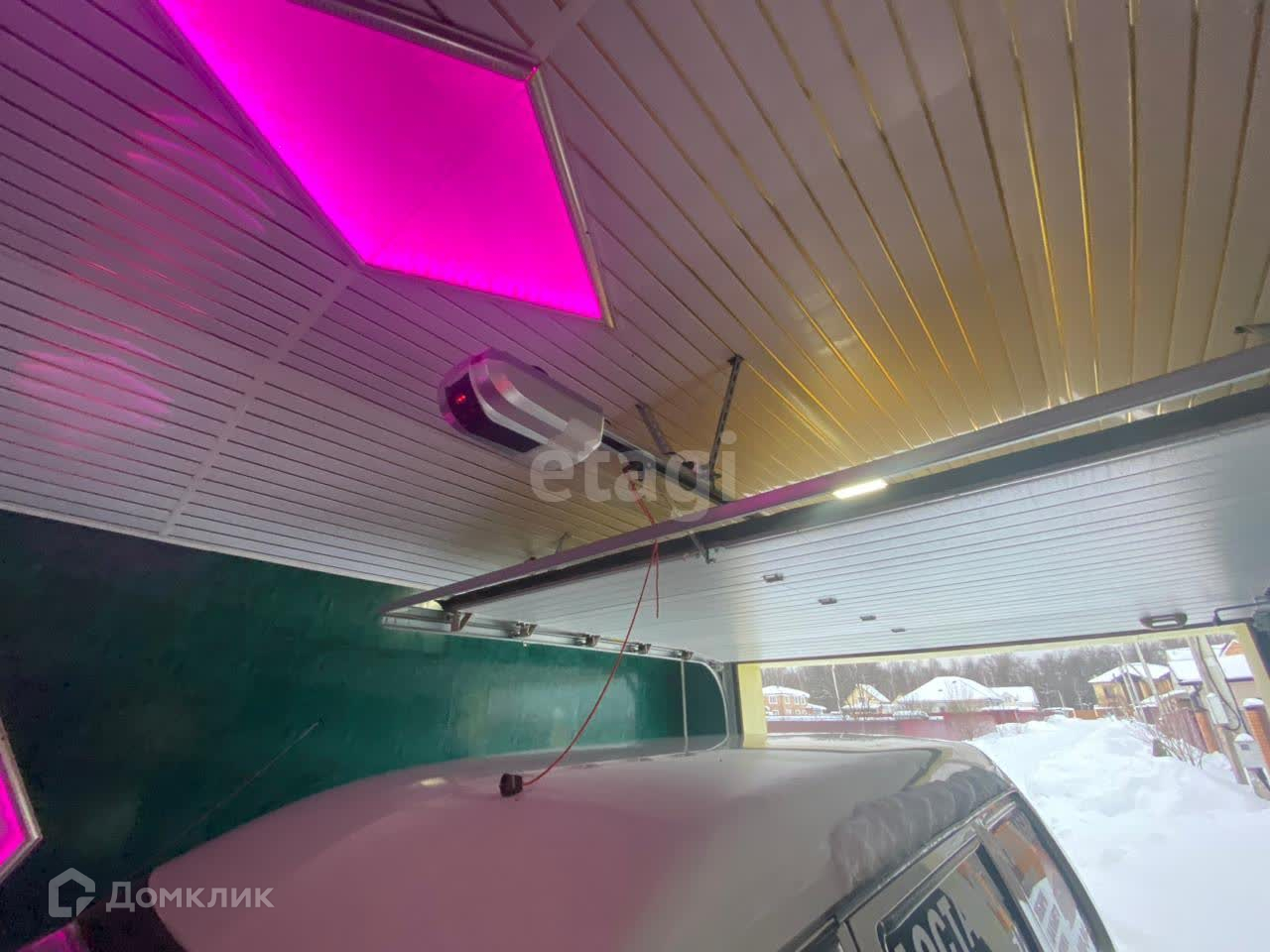 Большой гараж с высоким потолком вместительностью на три машины с въездом и выездом на обе стороны участка с электроворотами на дистанционным управлении.