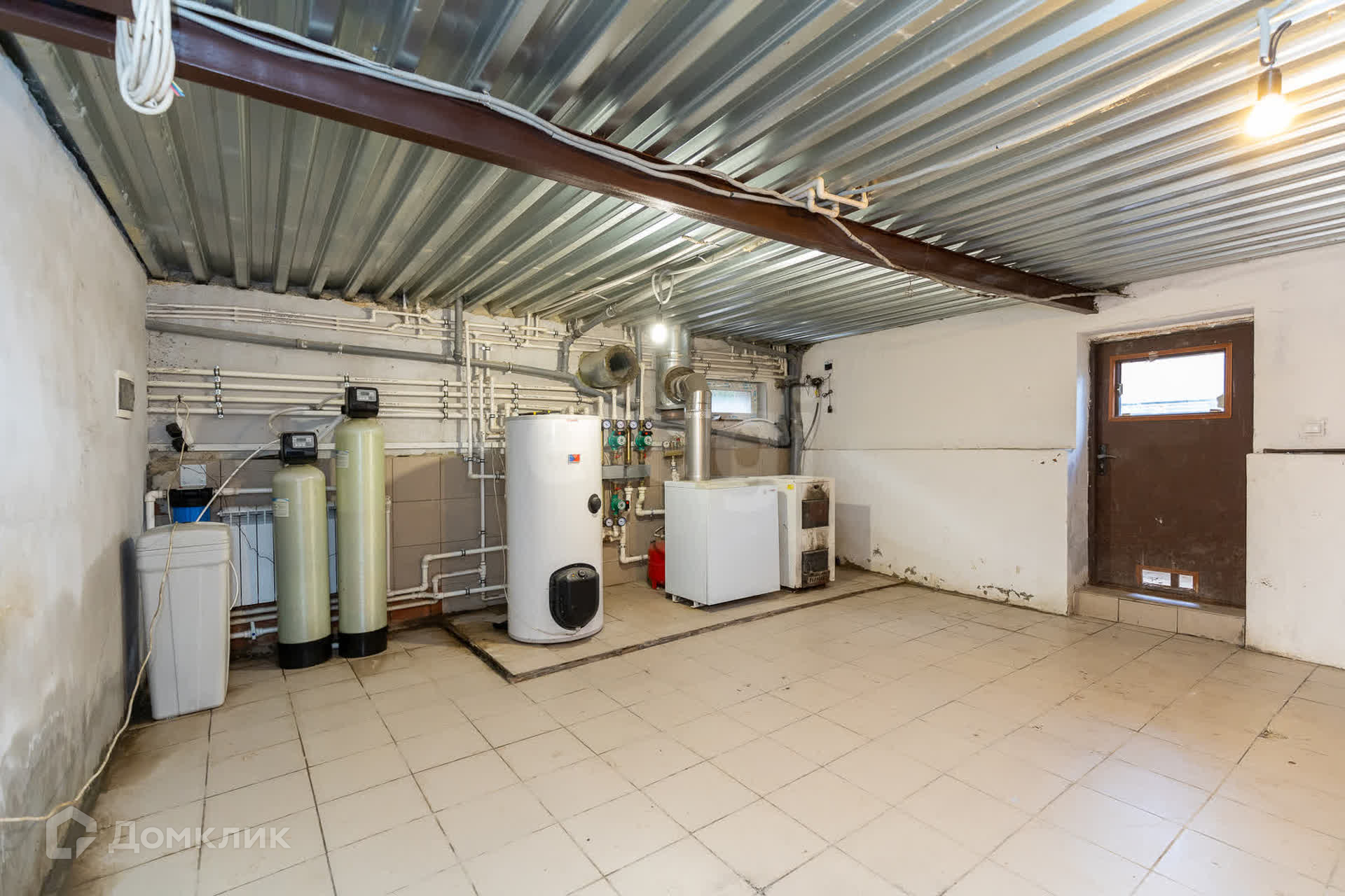 Цокольный этаж, где располагаются котельная, бойлер и фильтры для воды, состоит из 4 изолированных помещений, отапливается, на полу плитка.