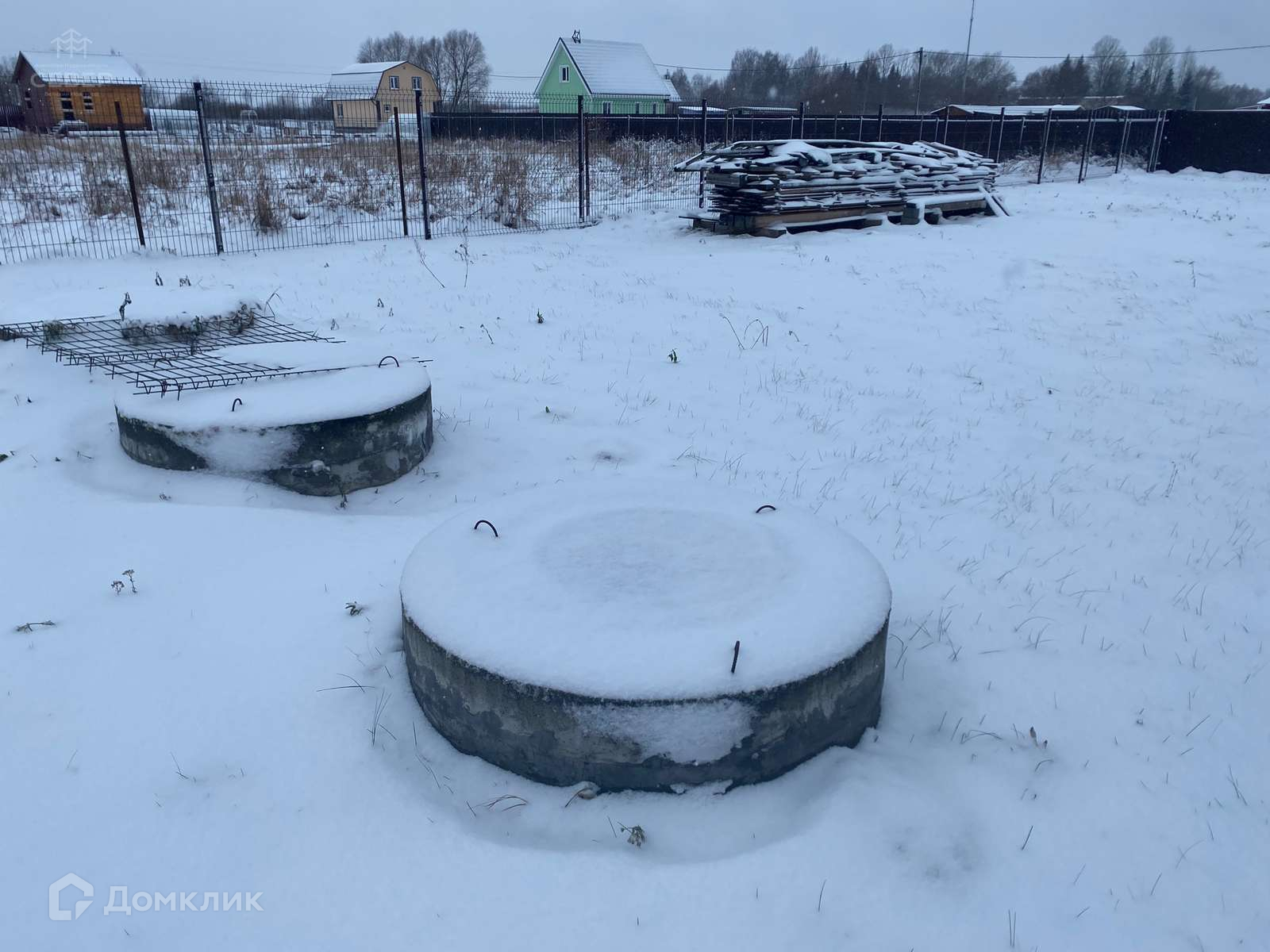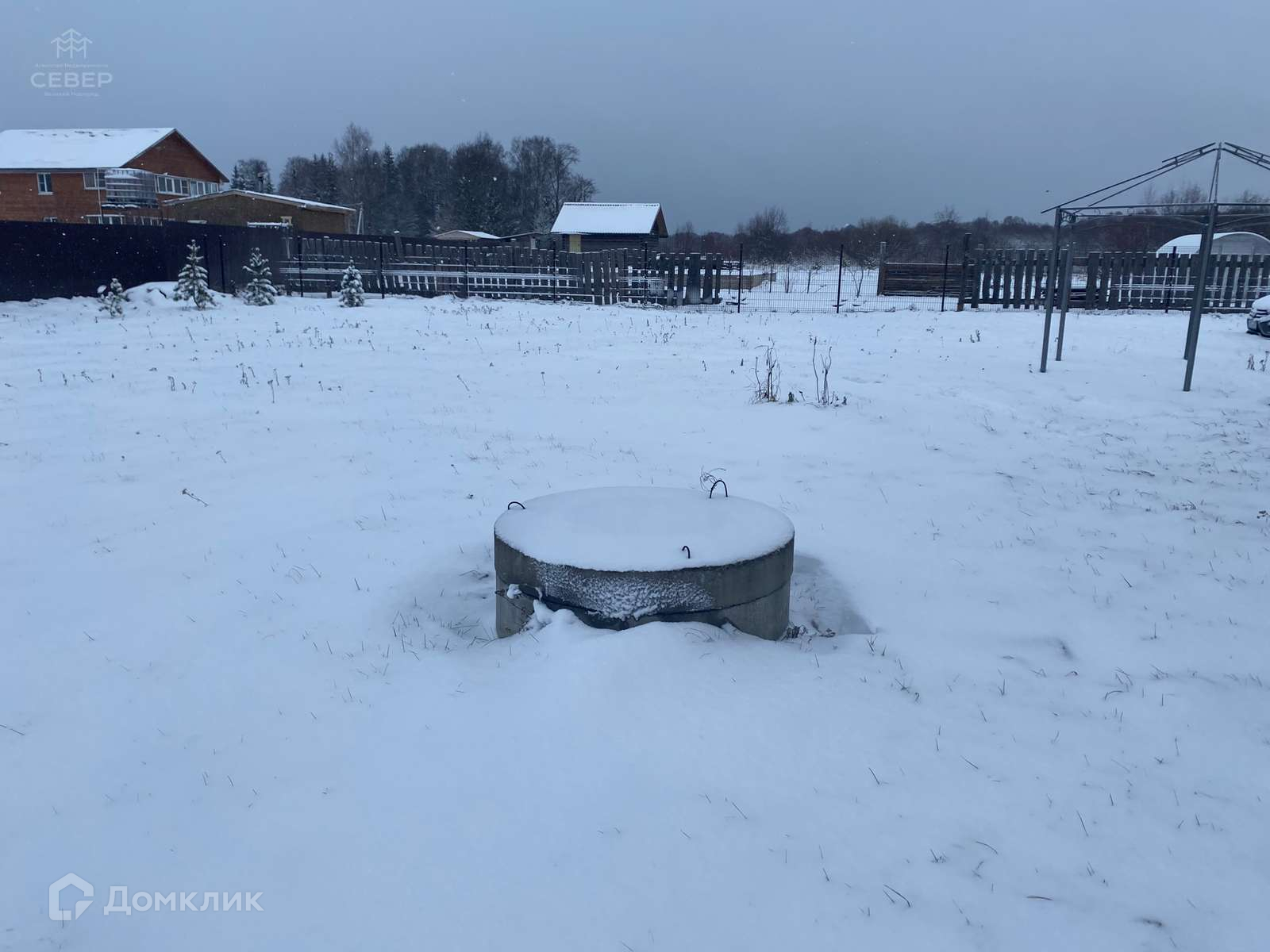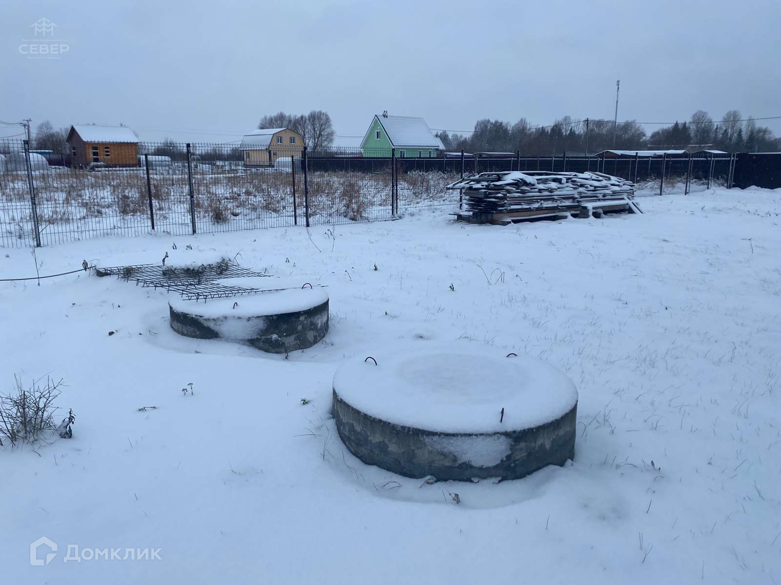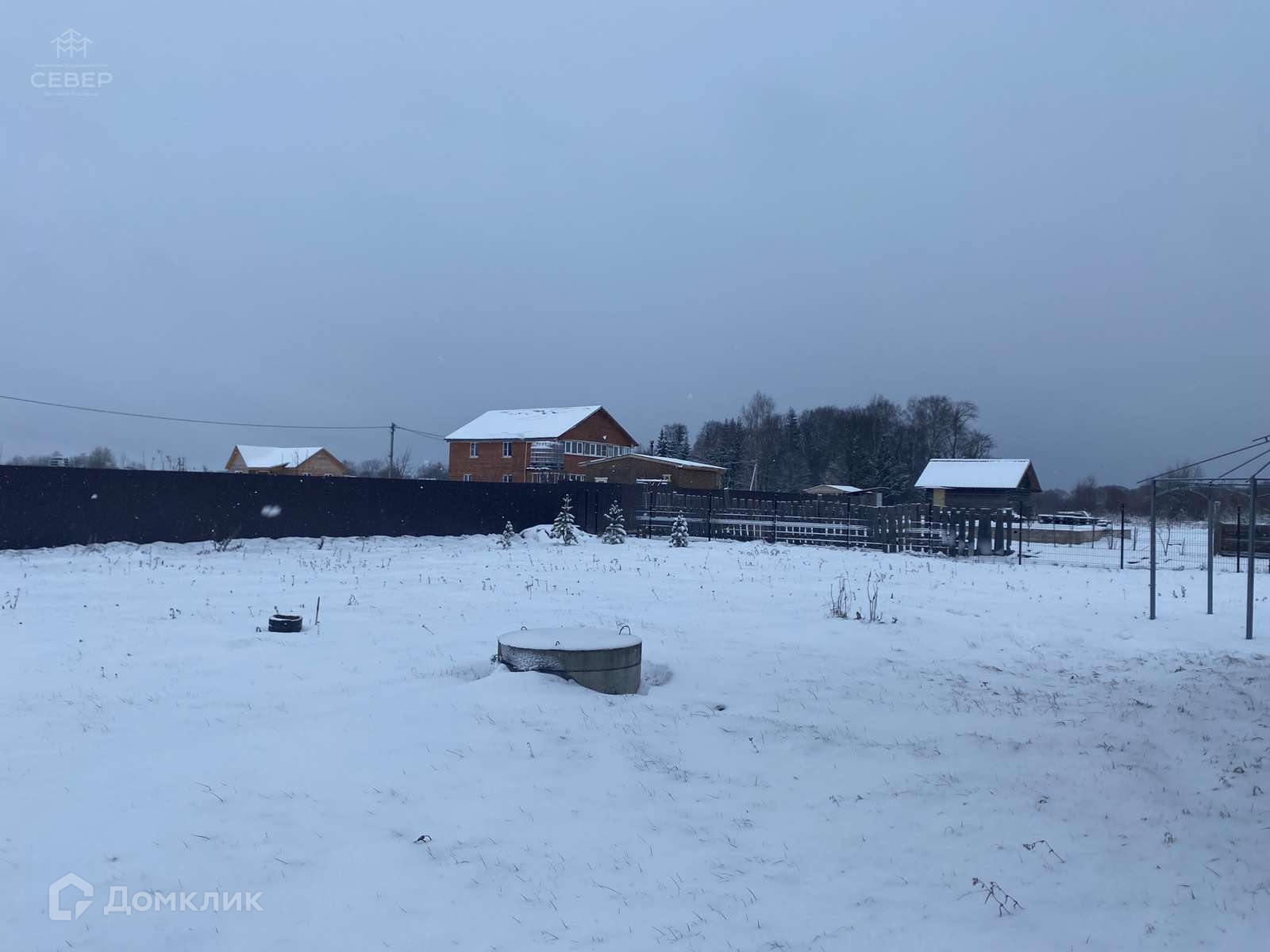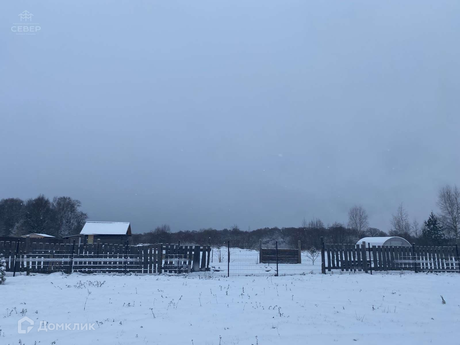 - На участке бытовка, участок ровный, посажены 2 елки, 2 сосны и 4 кедра.