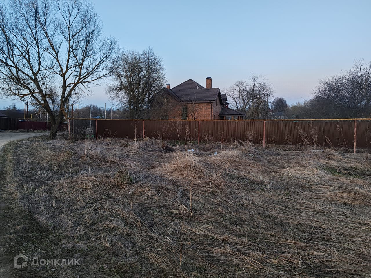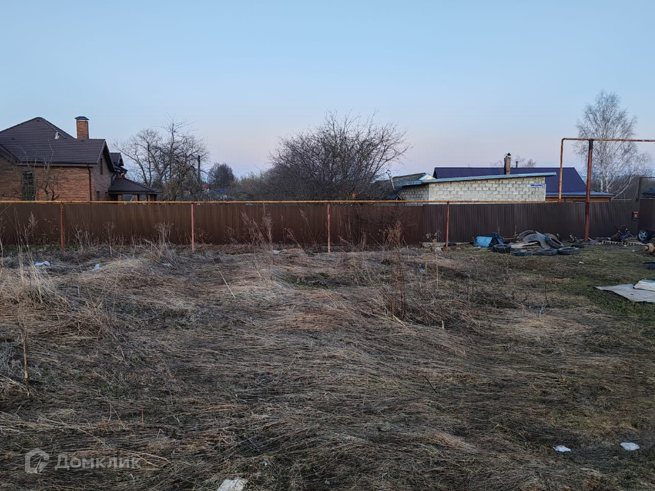 По периметру участка установлен забор из коричневого проф листа
