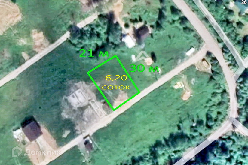 УЧАСТОК площадью 6,20 соток, прямоугольной формы, размер сторон: 21 х 30 метров.