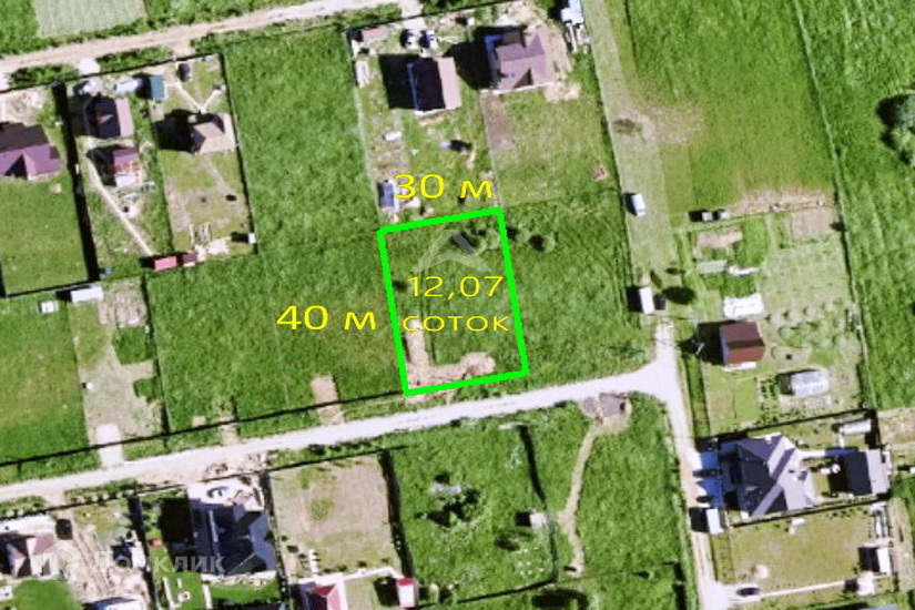 УЧАСТОК площадью 12,07 соток, прямоугольной формы, размер сторон примерно 30 х 40 метров.