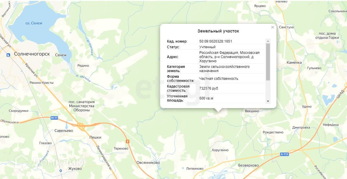 Продается земельный участок в деревне Хоругвино (Солнечногорский район) по Ленинградскому шоссе.