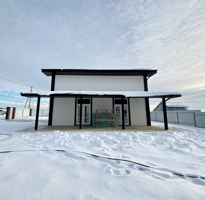 1-й этаж состоит из просторного зала, санузла, кухни, холла, большой уличной веранды. На 2-м этаже располагаются три спальни, просторнейший холл, сан узел.