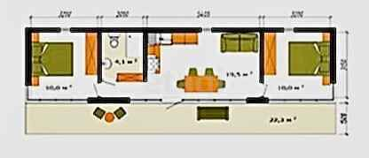 Кухня-гостиная - 19,5 кв.м, спальня 1 -10,0 кв.м, спальня 2 -10,0 кв.м, туалет - 3,8 кв.м, терраса - 22,3 кв.м.