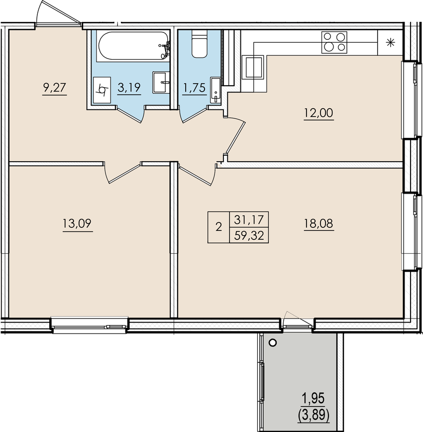 Общая площадь 57.65 м2