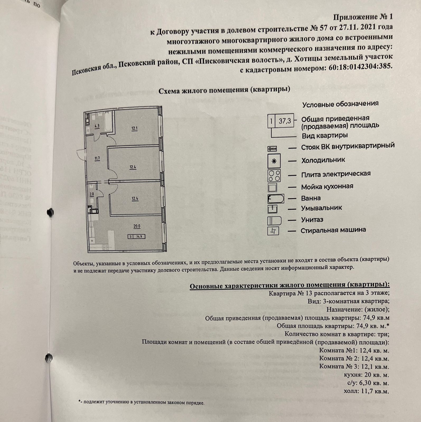 3-комнатная квартира, 74.9 м2, этаж 3 / 9, на продажу в деревне Хотицы, Загородная улица, 11