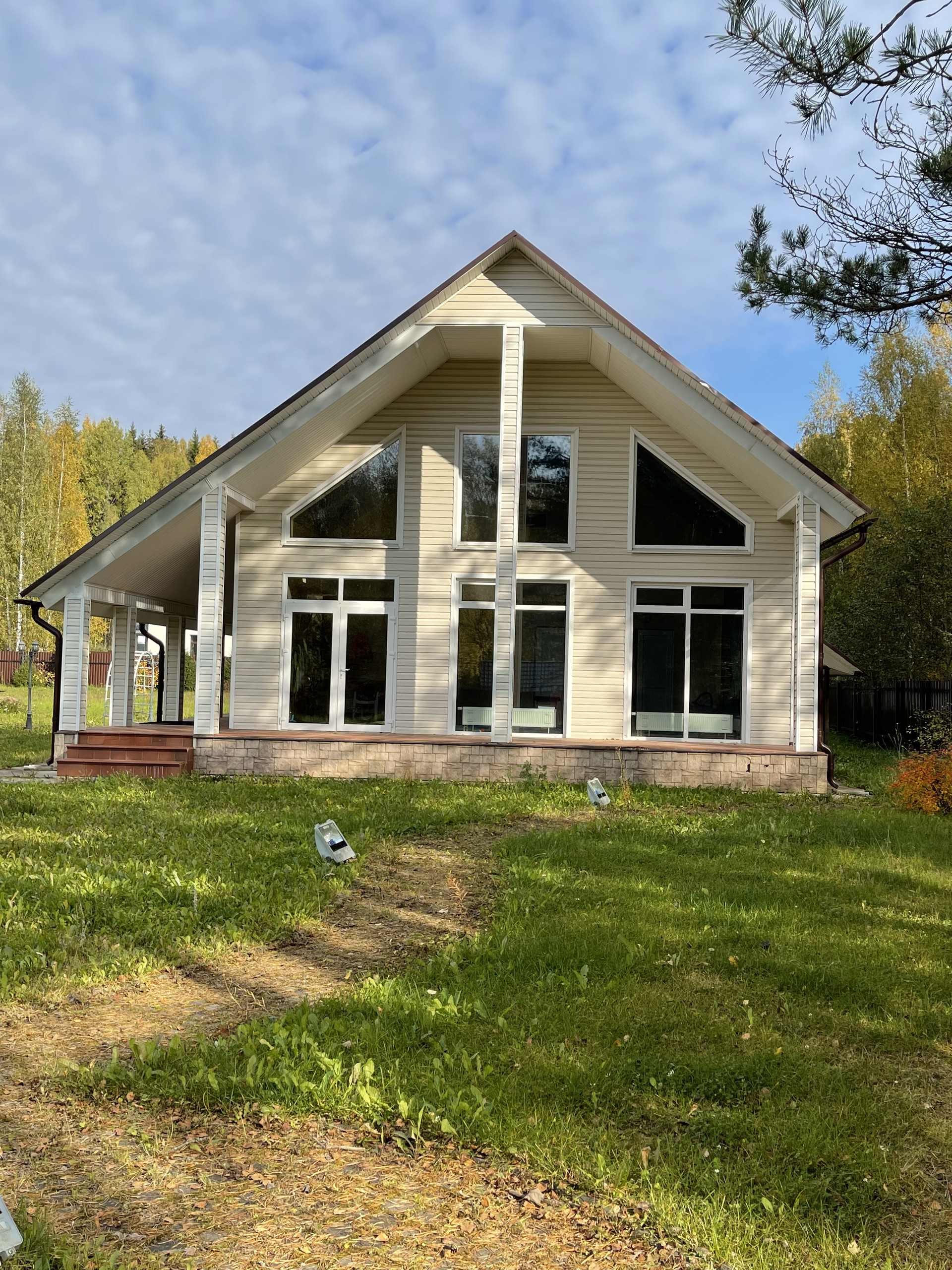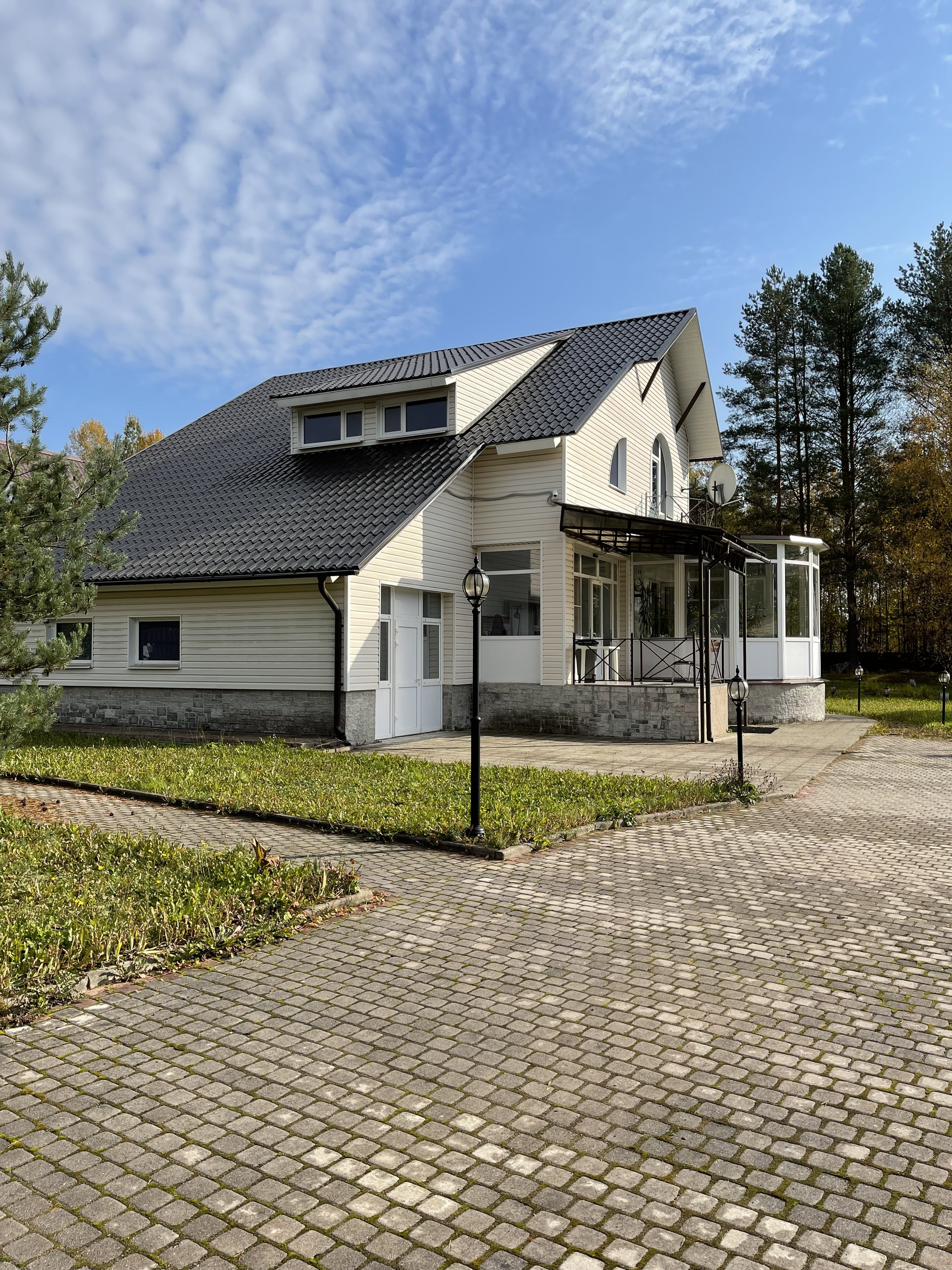 Жилой комплекс из трех коттеджей и бани с бассейном.
