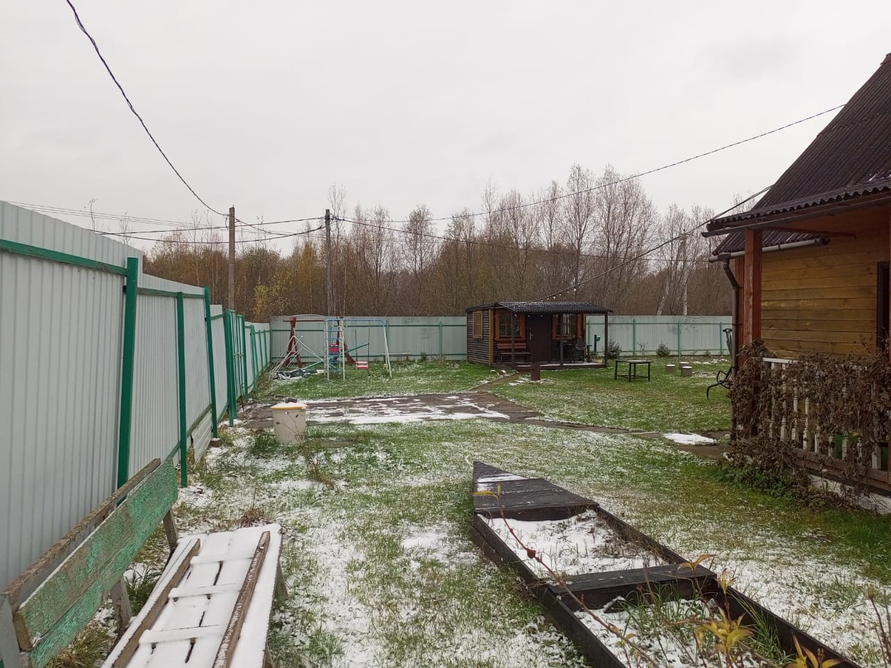- Участок огорожен забором.