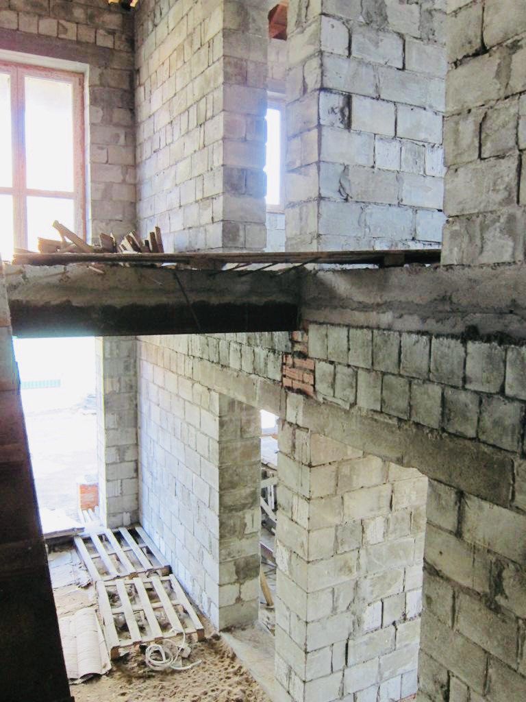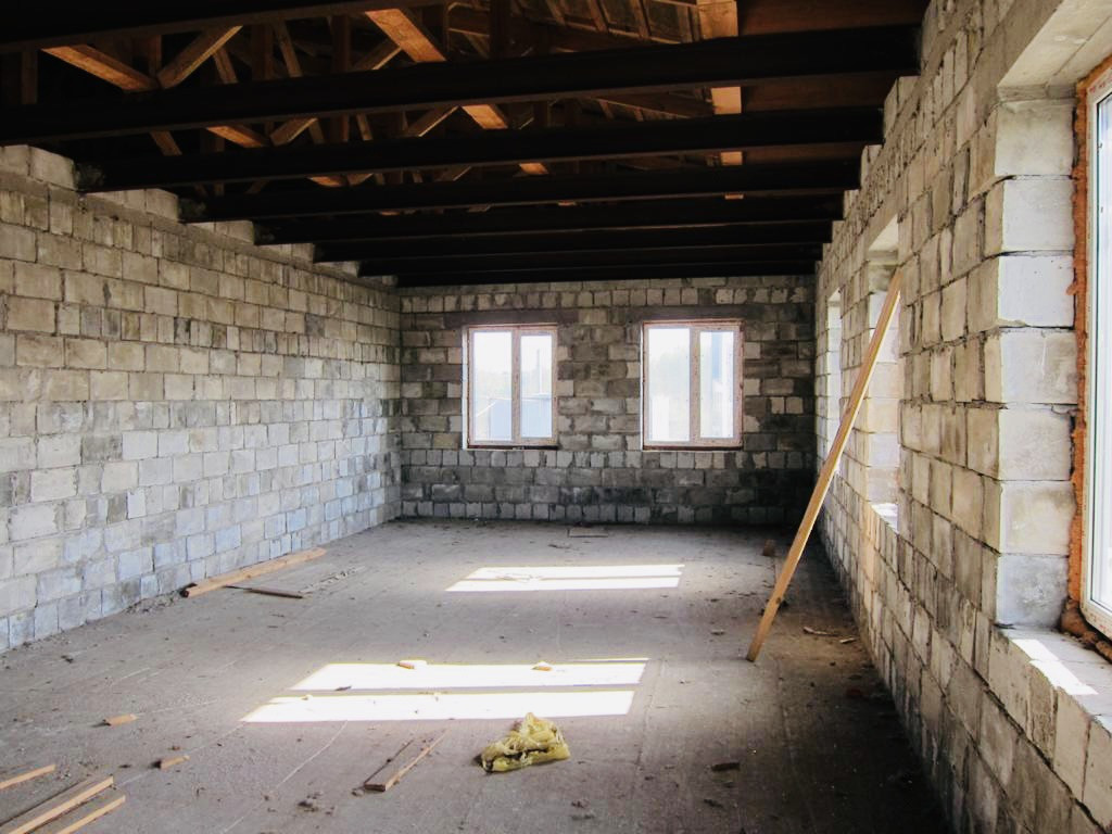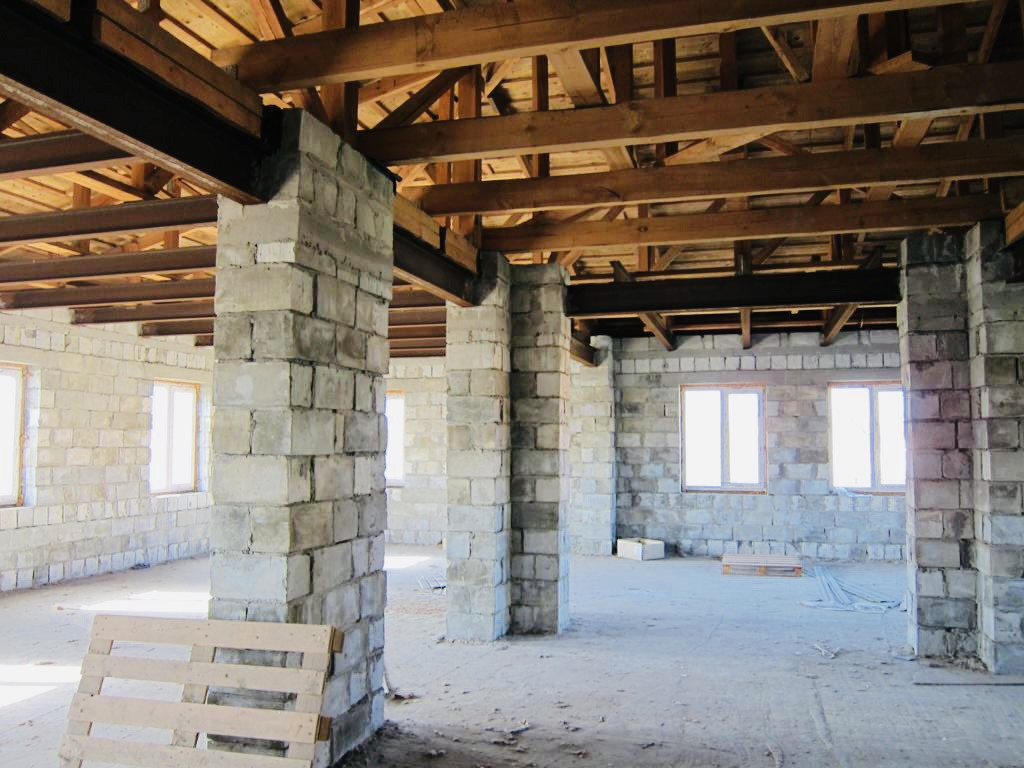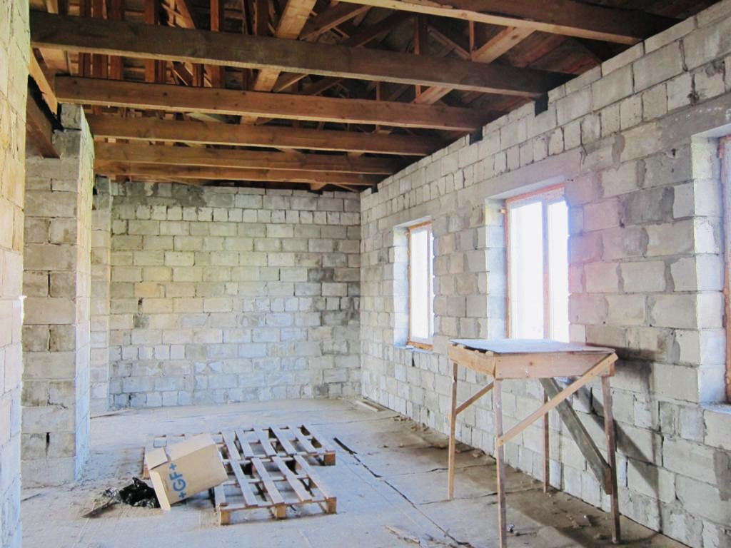 Дом построен из пеноблоков (толщина стен 560 мм), фундамент : ленточный с буронабивными сваями по системе Тиссе