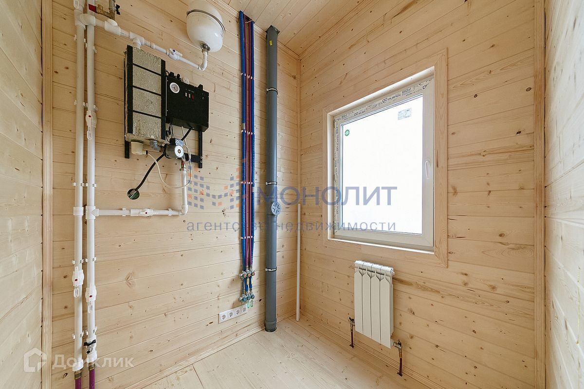 Толщина стен дома 280мм из них, толщина утепления 200мм, перекрестно, утеплитель экологически чисты Knauf, паро и ветрозащита MegaFlexx Green. Внешне обшит имитацией бруса с двухслойным окрасом Tikkurila, до пришивки на стену. Кровля металлочерепица толщиной 0,5мм Grand Line, водосточная система Grand Line. Входная металлическая дверь с порошковым окрасом цвет 7024. Стеклопакеты Rehau двухкамерные с расскладкой 15мм. Внутри дом обшит имитацией бруса хвойной породы, полы шпунтованая половая доска, хвойной породы. Произведена, скрытая разводка электросети, установлены розетки и выключатели Legrand электрощит АВВ, водопровод и отопление выполнено из сшитого полиэтилена Rehau на гильзах Rehau, установлены гребенки Far, для дальнейшего подключения к водораздаче. Водоподготовка в мокрых зонах. Канализационная система подготовлена под установку септика. Установлен электрический котел, залит отопительный антифриз Warn, установлены и запущены радиаторы rifar.