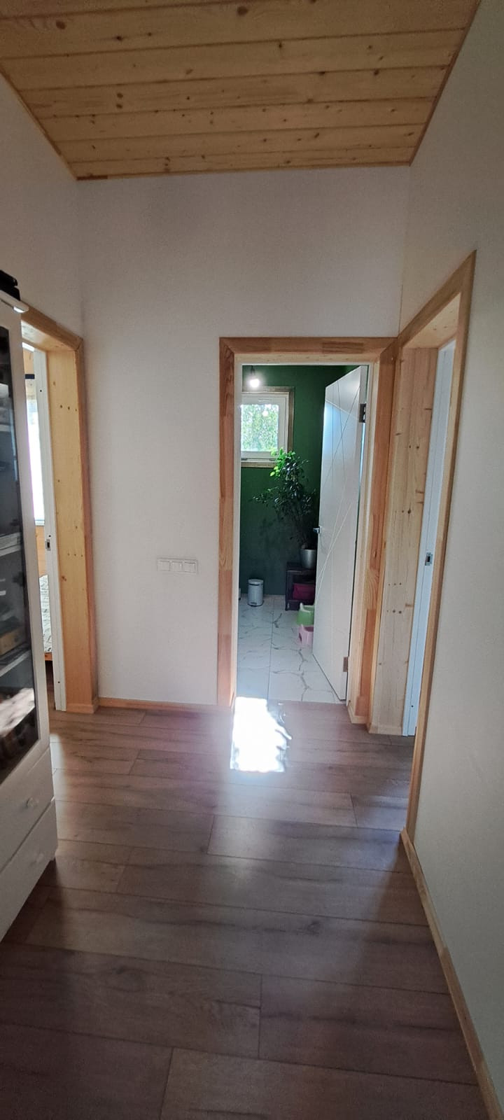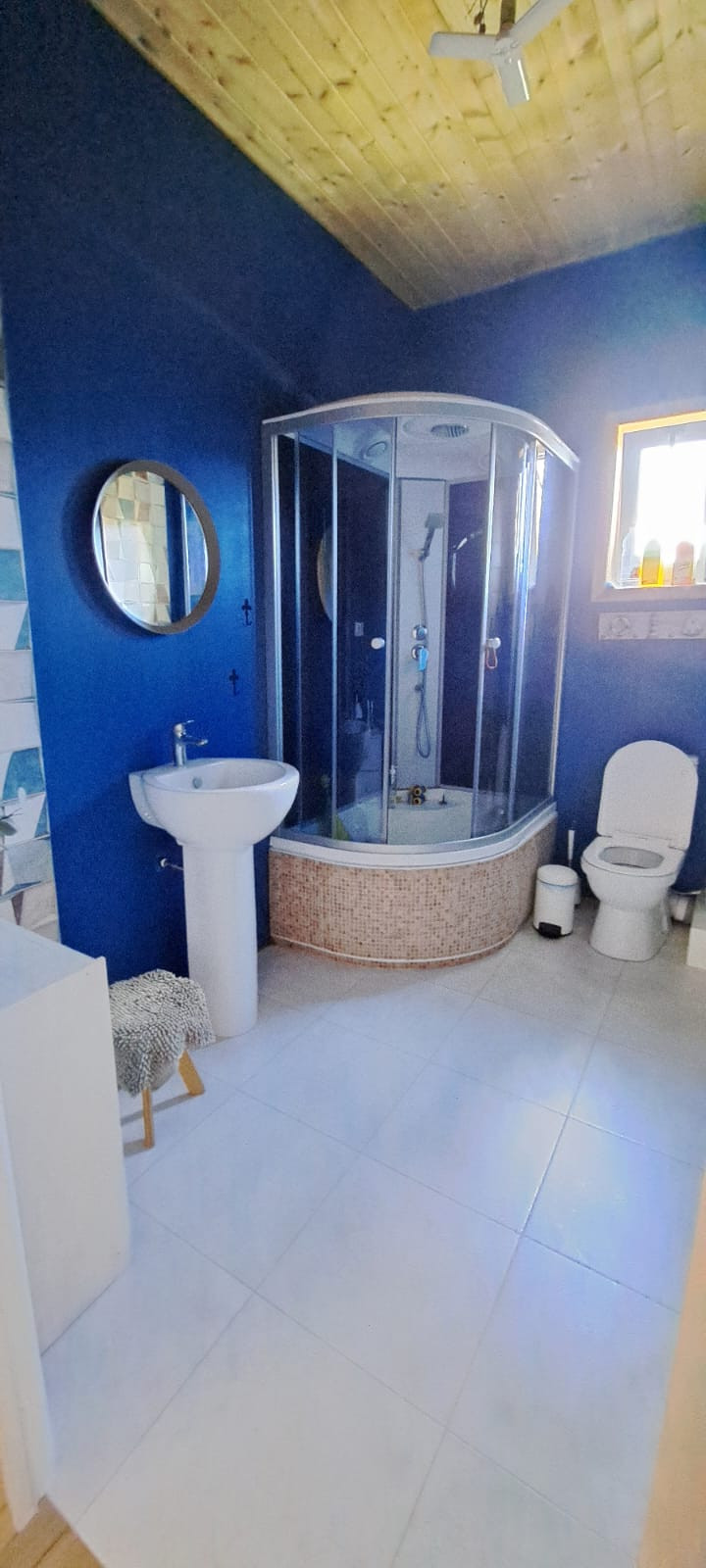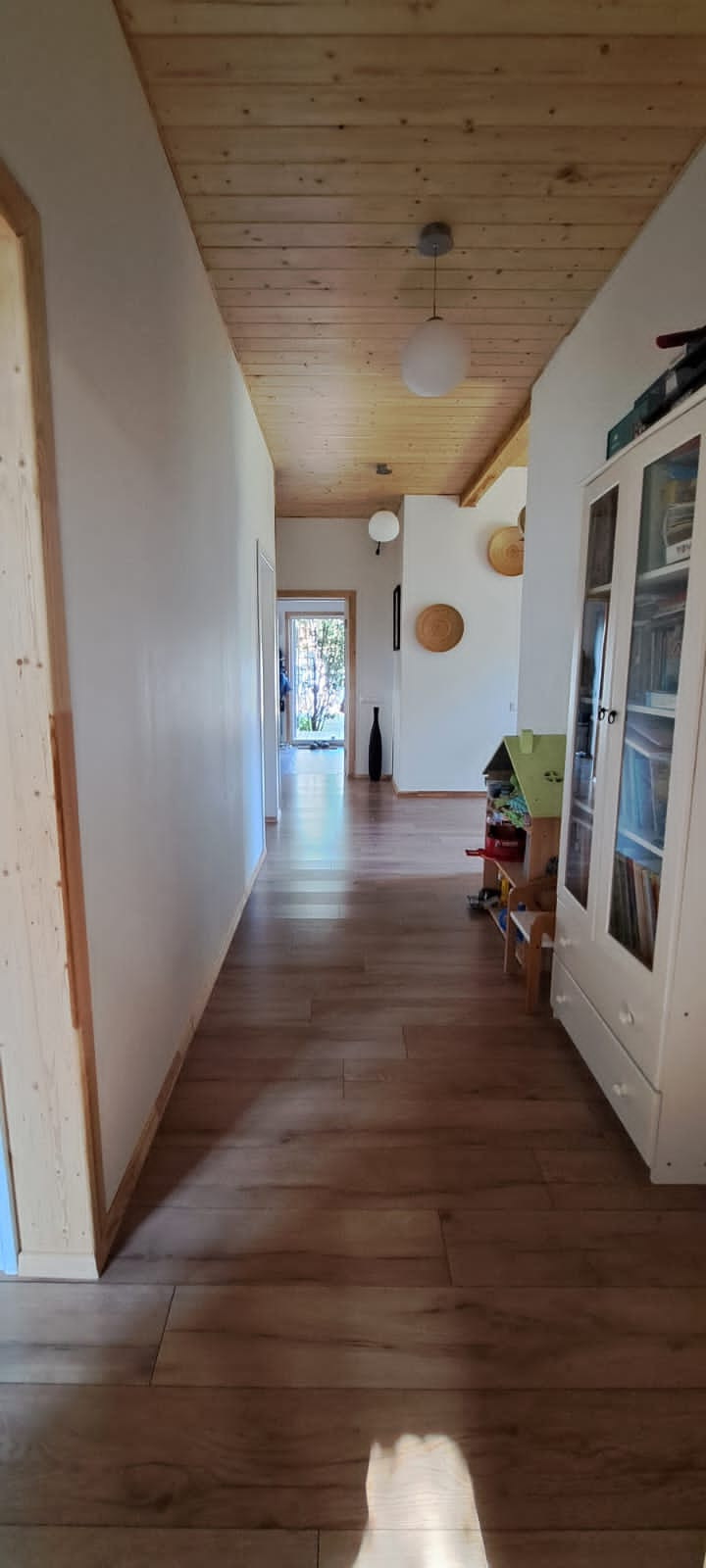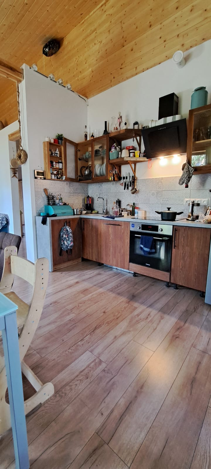 Дом меблирован и готов к проживанию, 3 спальни, 2 сан узла, гардеробная, котельная с отдельным входом, кухня-гостиная с панорамным остеклением и высокими потолками. Дом установлен на ЖБ плите, под плитой забито 40 ЖБ свай длиной 3 метра. Плита утеплена. Дом построен из сухой строганой доски пропитаной Neomid 430, внутри и снаружи дом затянут мембранами MegaFlex, снаружи обшит ЦСП вентилируемый фасад, зашпаклеван и окрашен структурной краской Tikkurila, деревянные вставки и фасад дома выполнены из планкена толщиной 28мм, окрашен террасным маслом Tikkurila. Пол террасы выполнен из палубной лиственницы. Внутренние стены комбинированные, имитация бруса толщиной 20мм. и влагостойкий ГКЛ в два слоя, зашпаклеваны и окрашены. Средняя толщина стен 32 см. Двухкамерные стеклопакеты Rehau ламинированные, цвет Вегне. Кровля металлочерепица, водосточная система, снегоудержание Gran Line шоколадного цвета. Цоколь металлический в цвет кровли. Приточно-вытяжная вентиляция во всех комнатах дома. Электрическая сеть, скрытая, негорючий кабель ВвгНГ, запакованный в гофру, электро щиток встроенный, автоматы BBk, выключатали и розетки Legrand. Скрытая водоразводка из сшитого полиэтилена Rehau. Во всем доме уложены водяные теплые полы, установлен регулируемый коллектор на 10 выходов, с насосом Grundfos, залита, бетонная стяжка 5 см. Установлен электрический котел 12 кВт Stout, с бойлером косвенного нагрева на 160 литров Stout. На полах в прихожей, сан узлах и гардеробной - керамогранит, в остальном доме ламинат 43 класса. Шумоизолированные межкомнатные перегородки 20 см. Межкомнатные двери Bravo шпонированые, белые. Гардеробная оборудована стеллажами Леруа Мерлен и Ikea. Кухонный гарнитур из натурального дерева со встроенной техникой ( плита, духовой шкаф, двух камерный холодильник). Дом продается частично с техникой и мебелью.