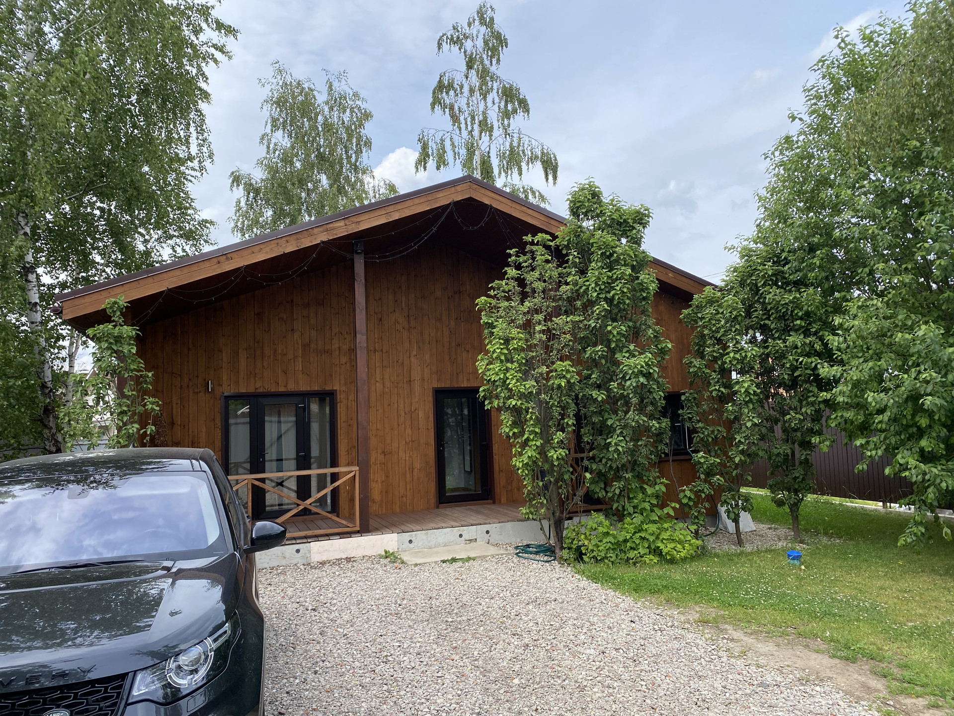Утопающий в зелени участок 5,5 соток, выровнен плодородным грунтом, высажен газон. Участок, огорожен по периметру забором. На участке имеются колоновидные яблони, дом окружен взрослыми березами. В дом заведена собственная скважина глубиной 42 метра на пластиковой обсадной трубе, с двумя фильтрами очистки, установлен насос с греющим кабелем, канализация подключена к 7ми камерному септику (RuSanit Pro с залповым сбросом на 680 литров). Паркинг на 2 автомобиля, отсыпан щебнем. Led освещение по периметру дома. В дом заведено электричество 3 фазы 15 кВт, оплачивается на прямую в Россети. Газовая магистраль проходит вдоль участка, подключение на платной основе.
