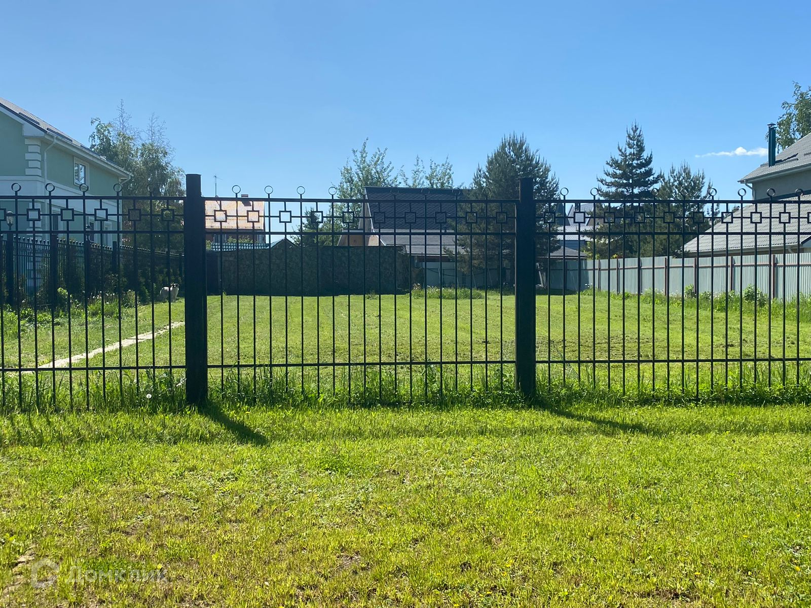 Ровной прямоугольной формы 9.7 соток, огорожен металлическим забором. Категория земель: земли сельскохозяйственного назначения, разрешенное использование: для ведения дачного хозяйства.  Удобное расположение: на машине до Москвы можно добраться за 7-10 минут.