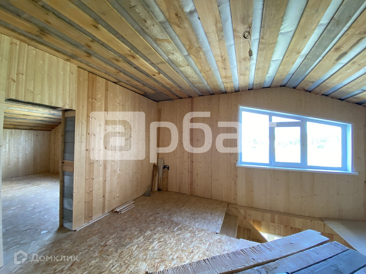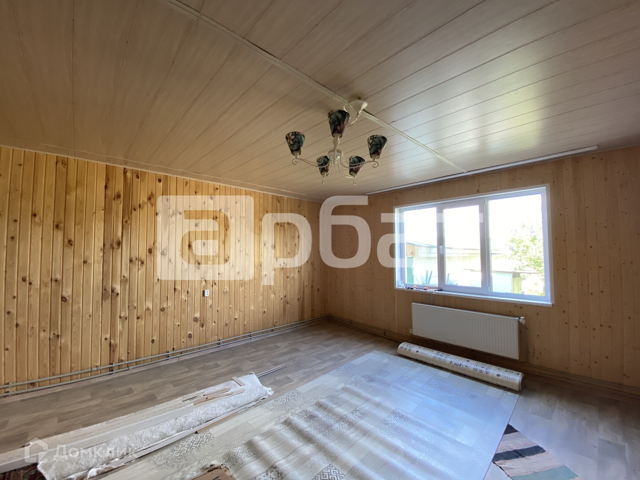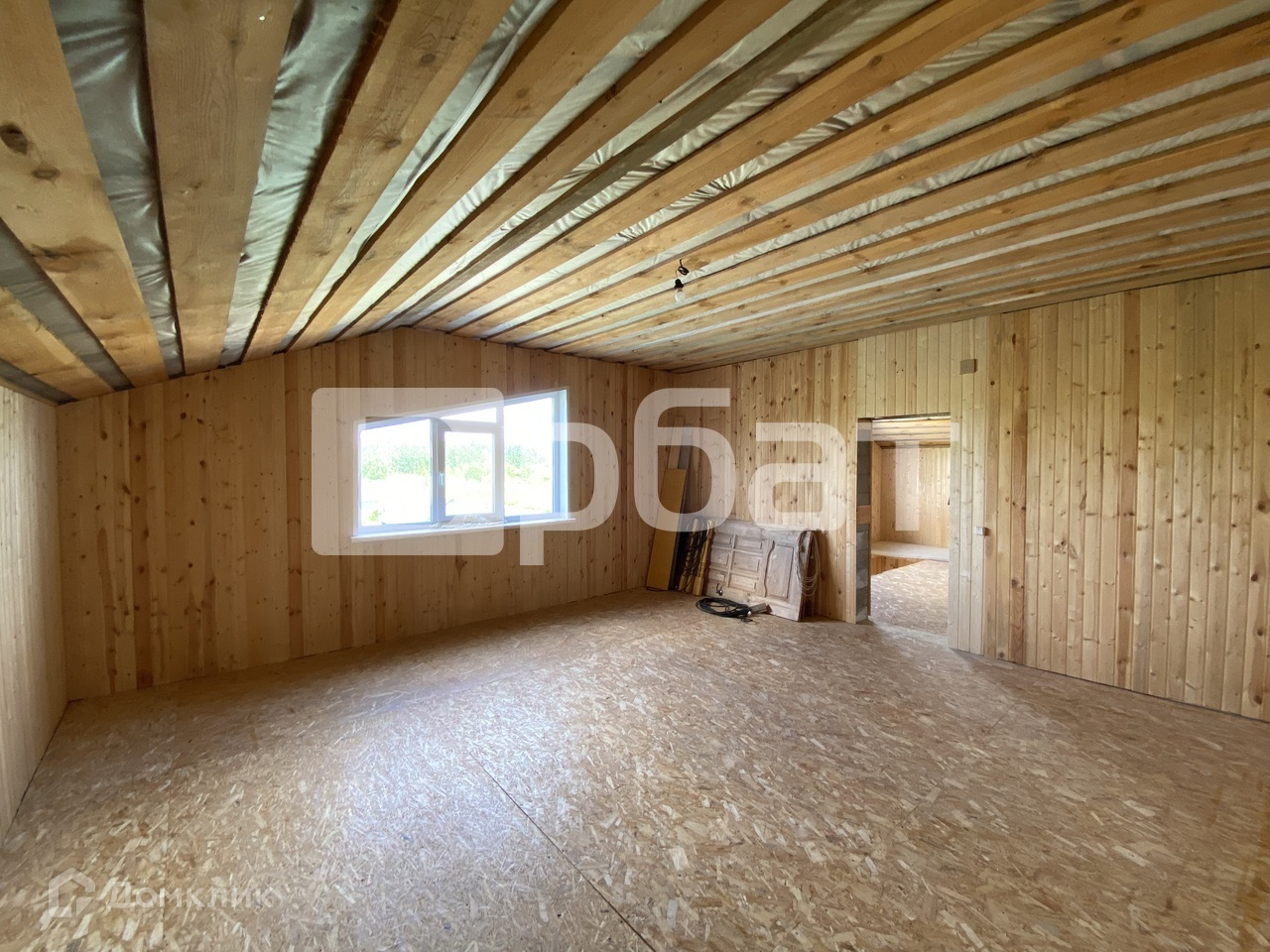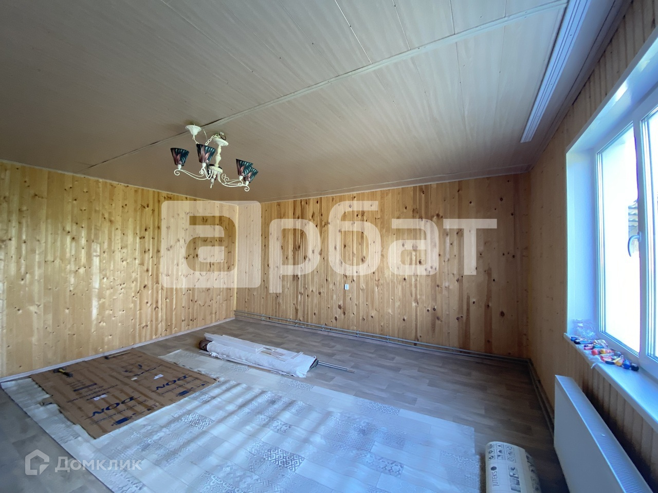 Дом на фазе завершения отделочных работ. Внутри обшит вагонкой, на полу линолеум.
