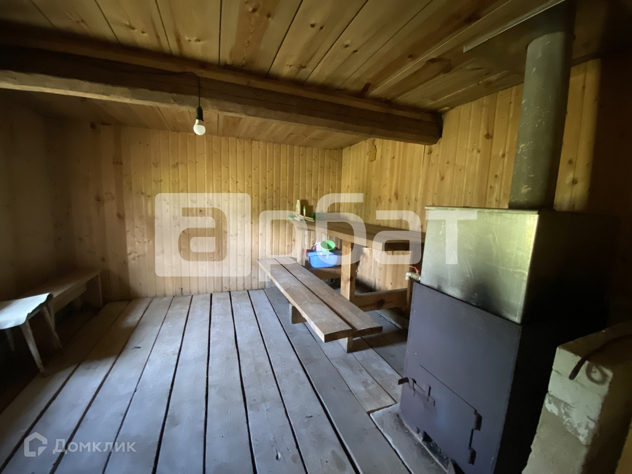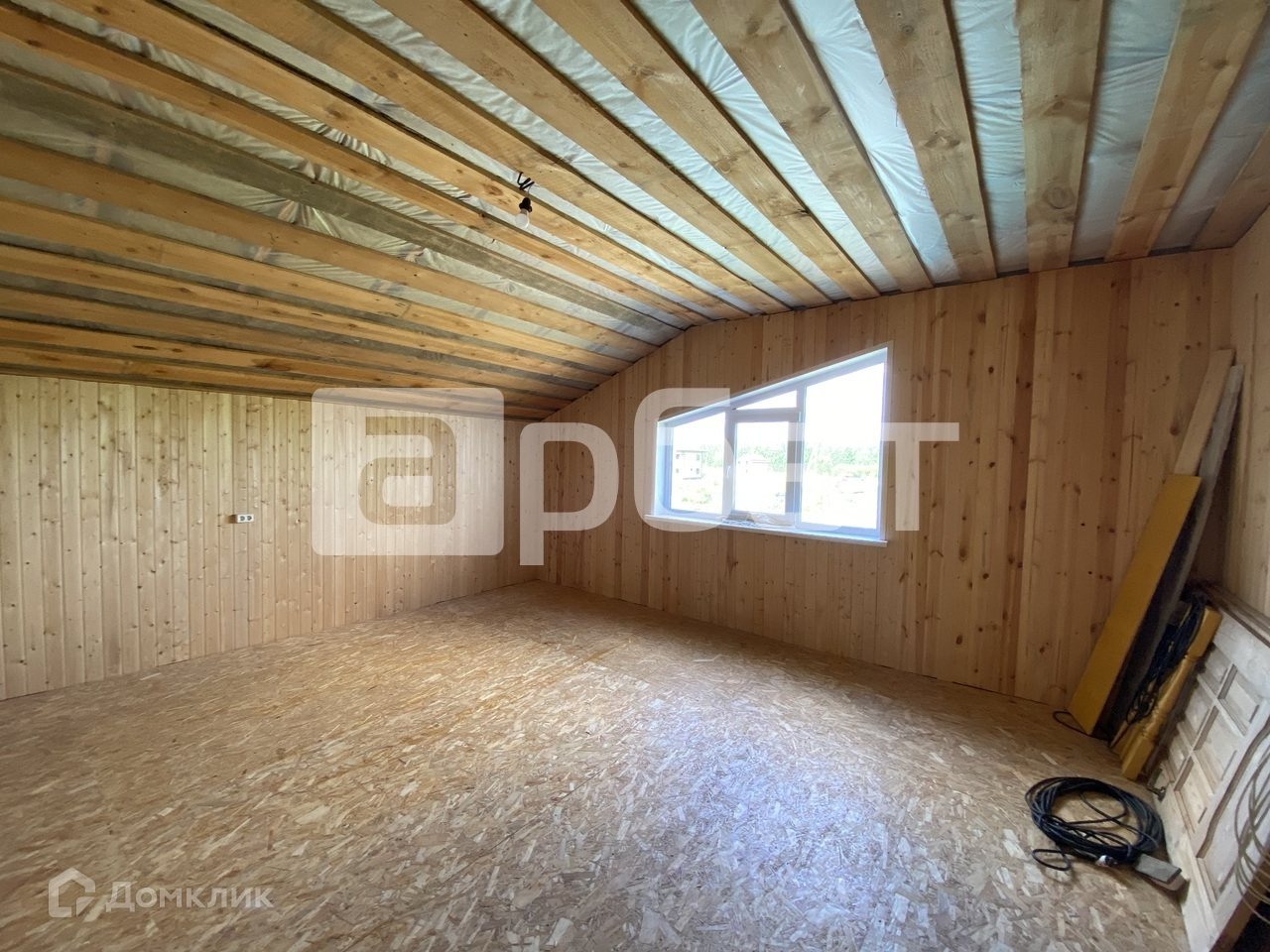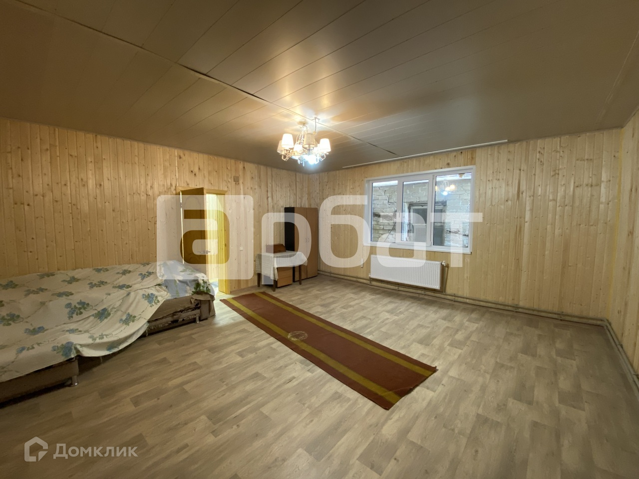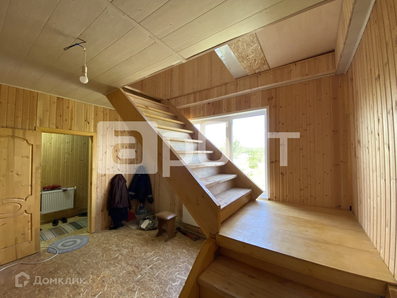 Дом на фазе завершения отделочных работ. Внутри обшит вагонкой, на полу линолеум.