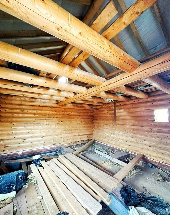 - Стадия строительства на 80% завершена, осталось совсем немного до готовности к заселению - установить входную дверь и сделать перекрытия.