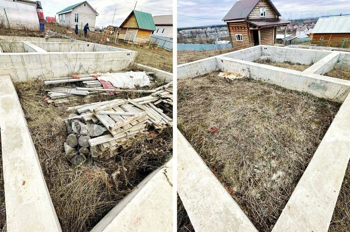 - На участке большой фундамент, залитый на сваях для основного дома  8×8 и гаража 8х5, а также бытовка размером 2х6 для удобства.