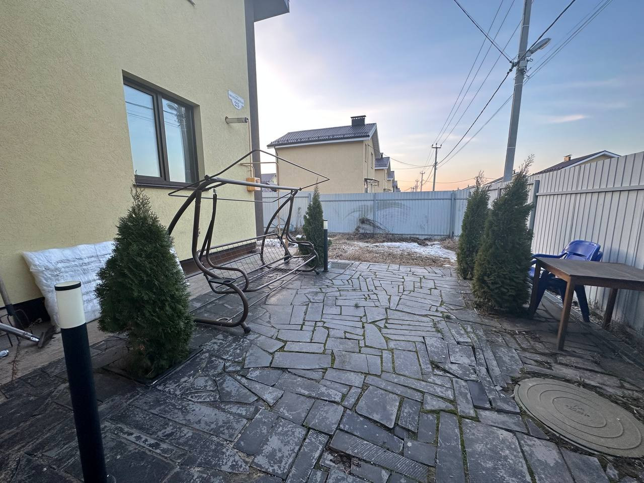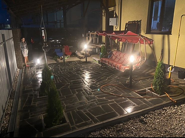 Перед домом есть патио из гранитного камня. Уютная площадка для летних ужинов с вином и мясом. Выведены световые столбы. Есть зона для барбекю.