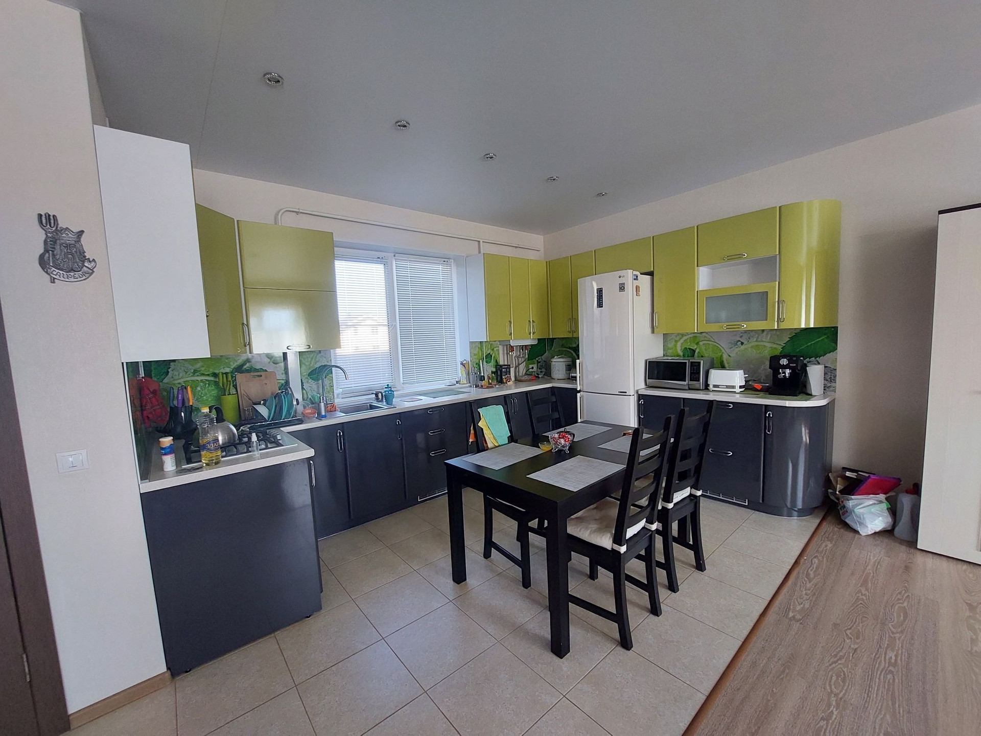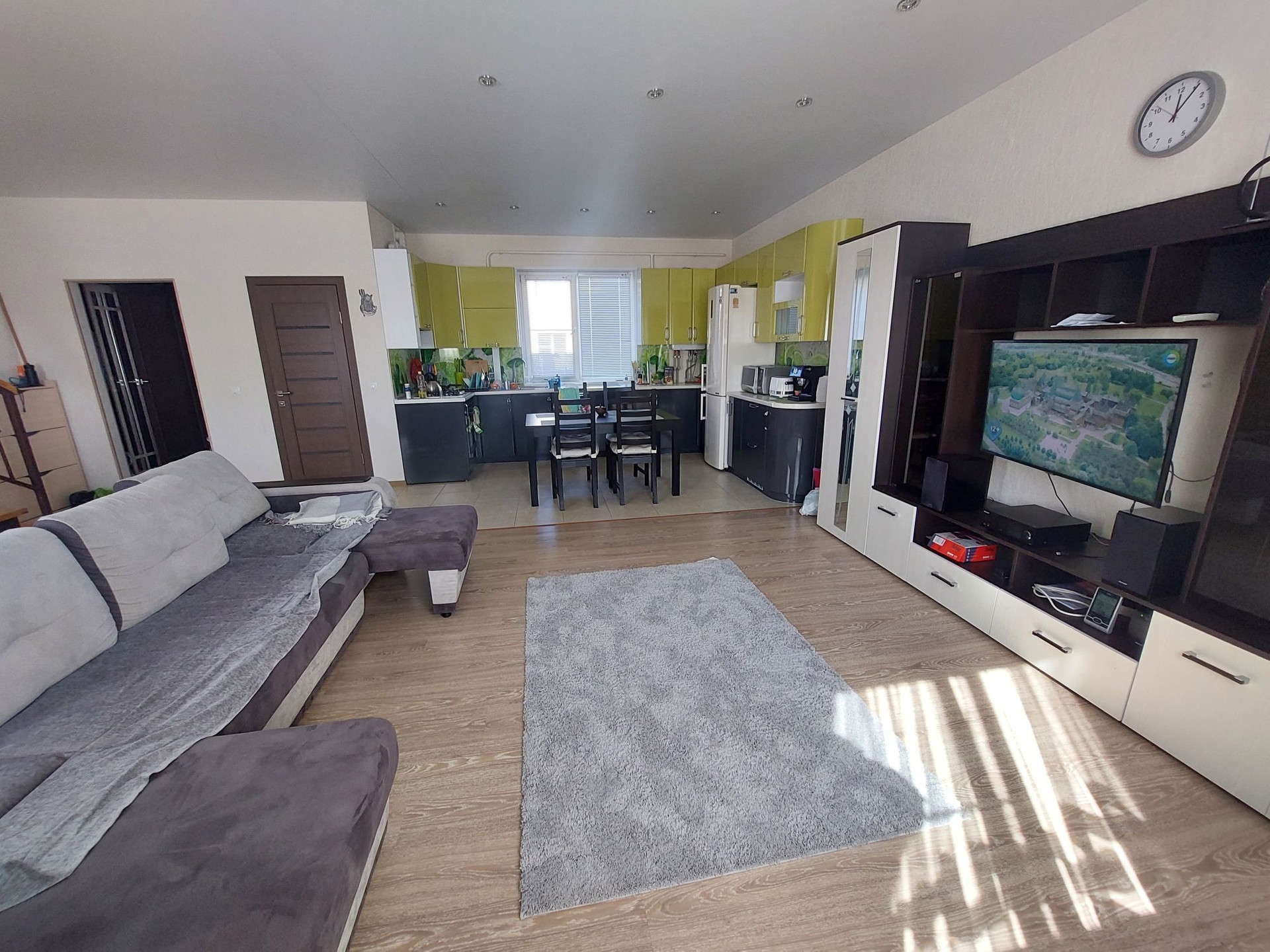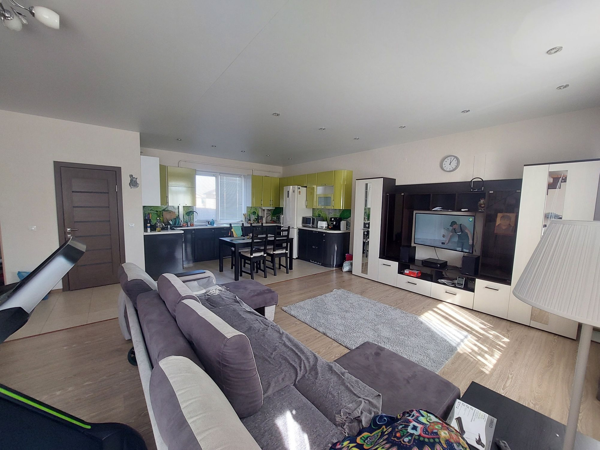 3-метровый диван с выдвижными оттоманками и антивандальной обивкой, холодильник и стиральная мишинка с wi-fi, газовая варочная панель, духовой шкаф..