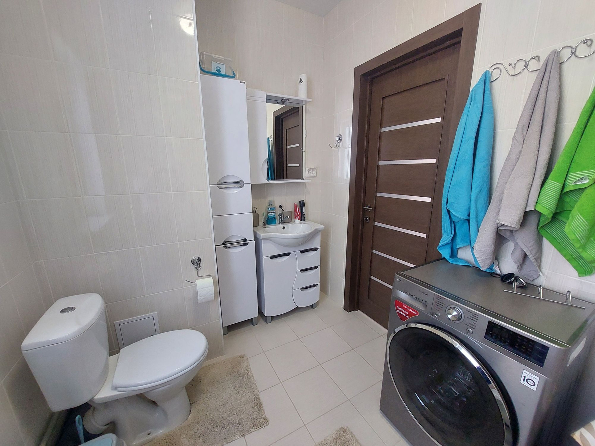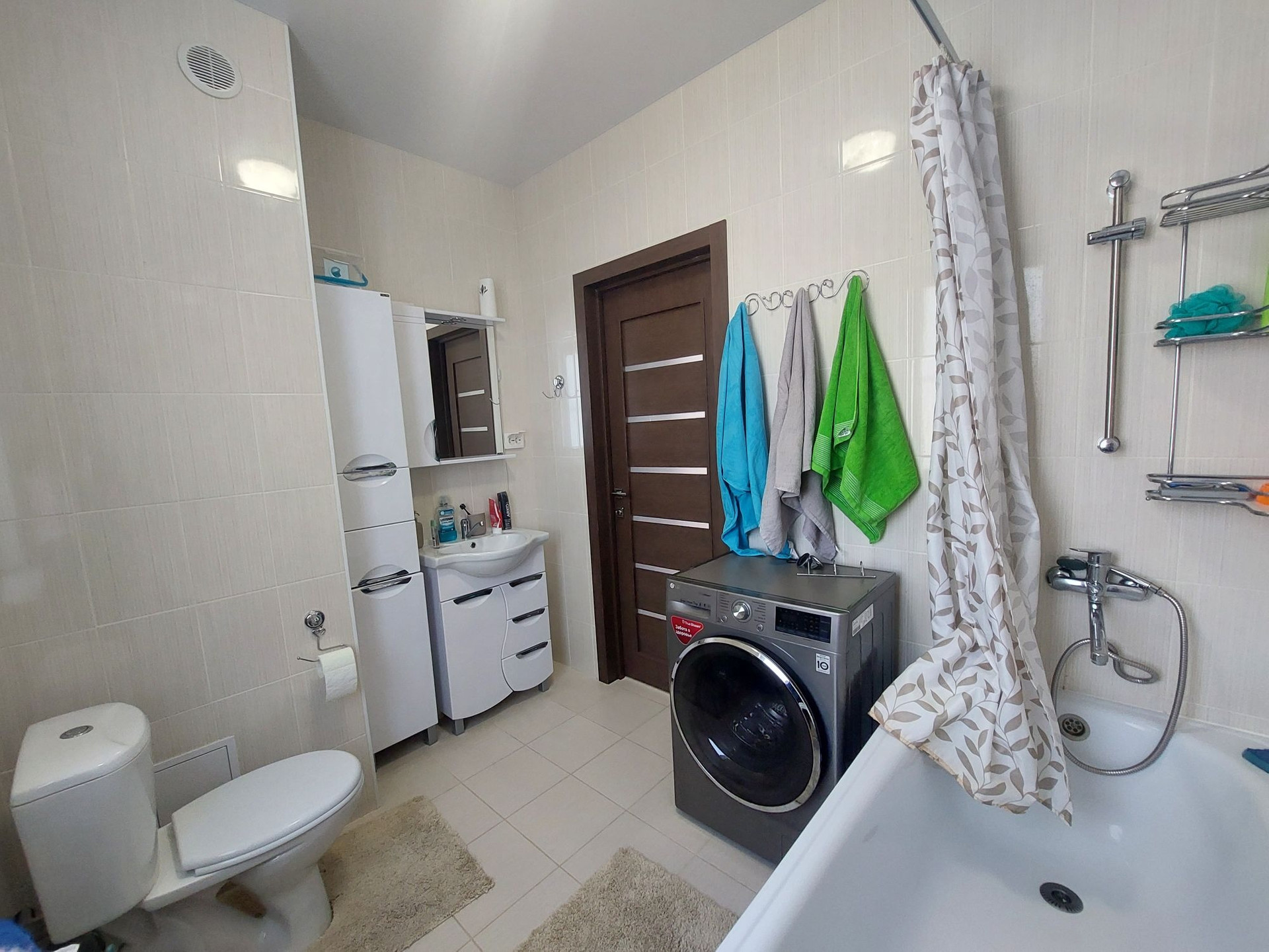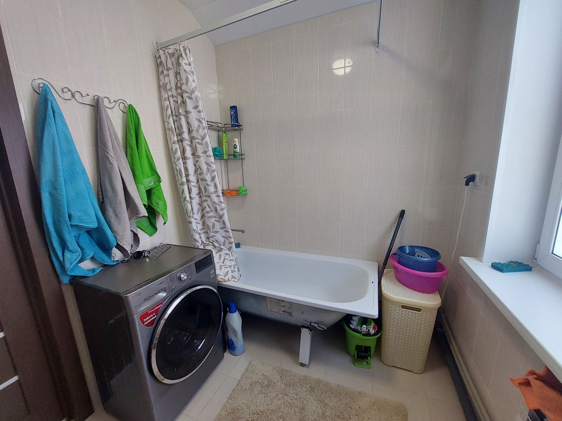 3-метровый диван с выдвижными оттоманками и антивандальной обивкой, холодильник и стиральная мишинка с wi-fi, газовая варочная панель, духовой шкаф..