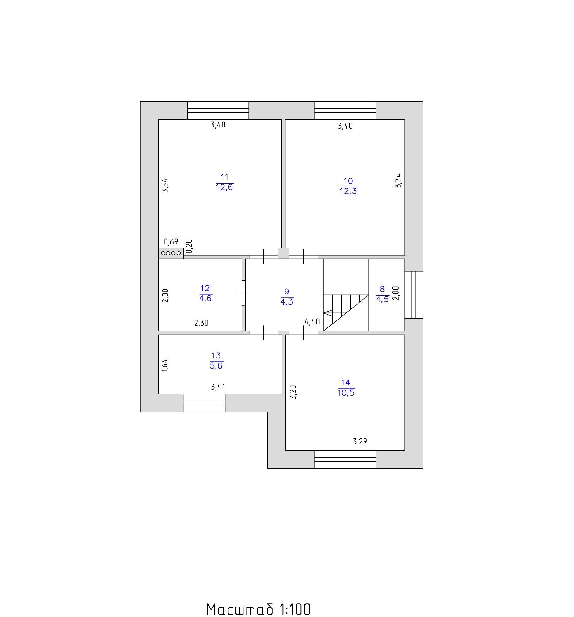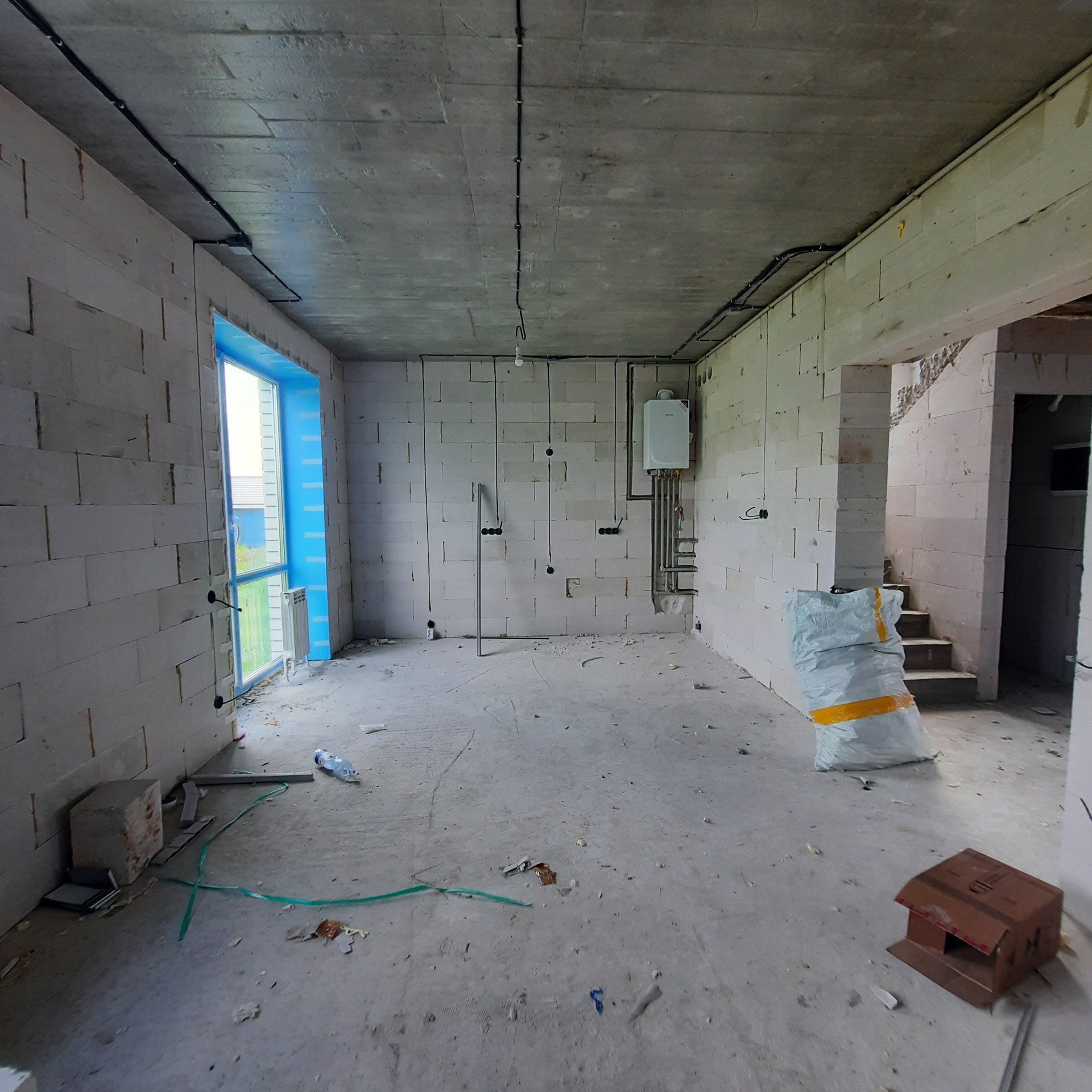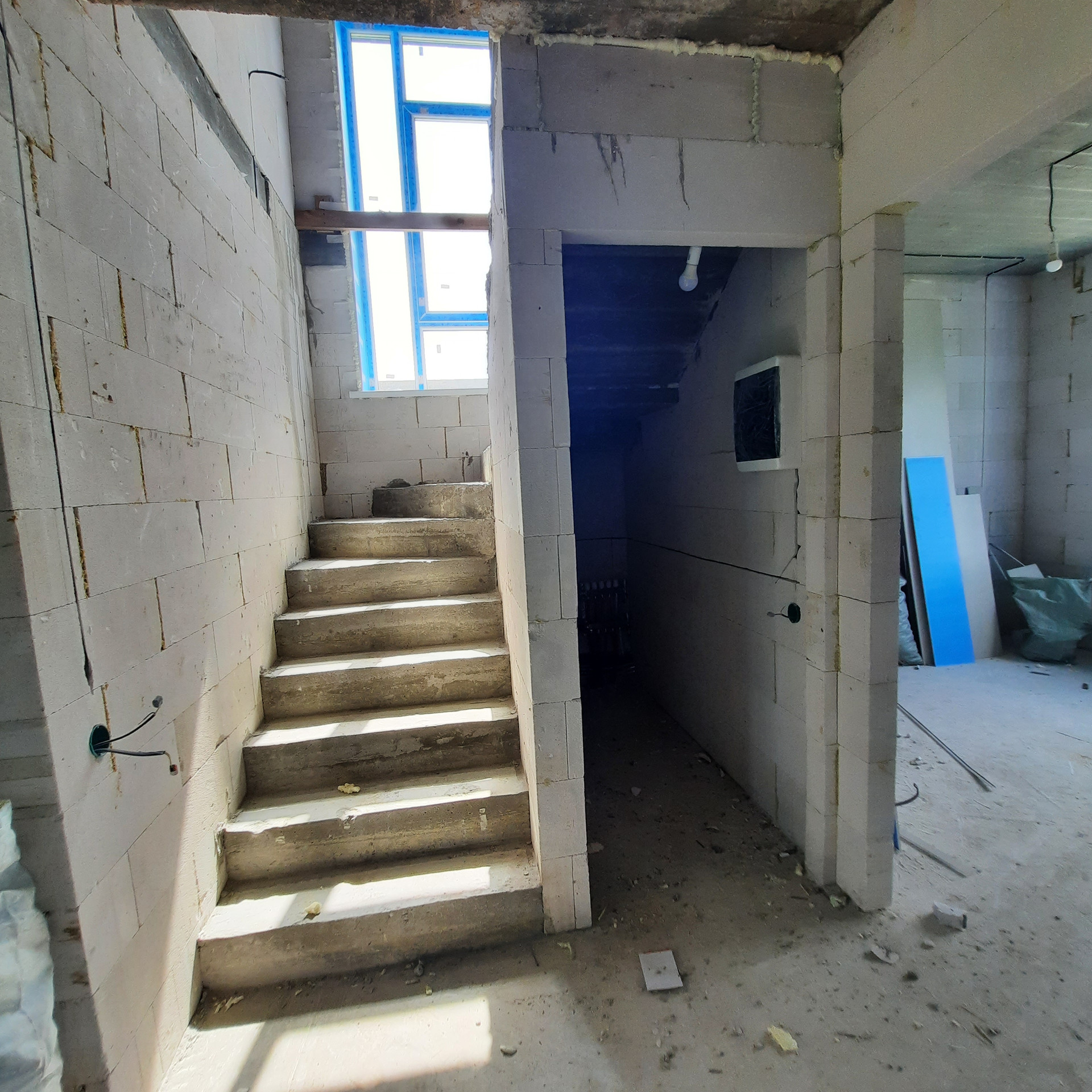 Лестница на второй этаж железобетонная.