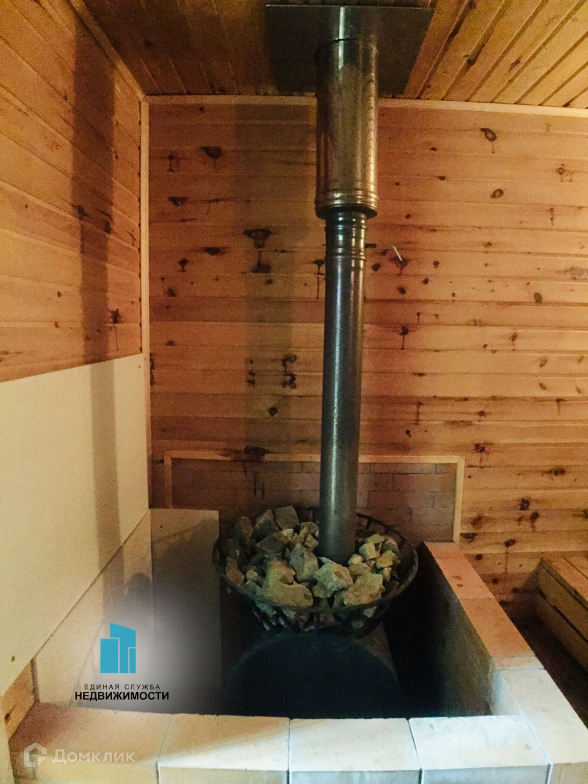 На территории участка также размещена баня с дровяной печью и купелью.