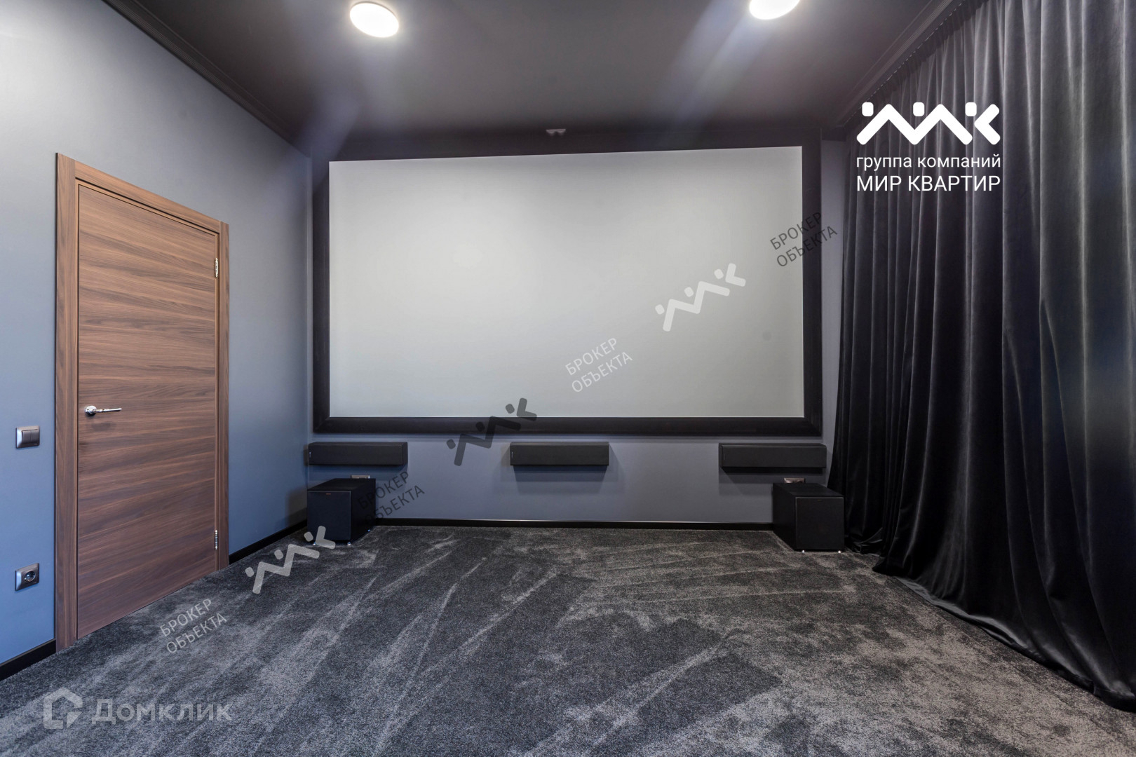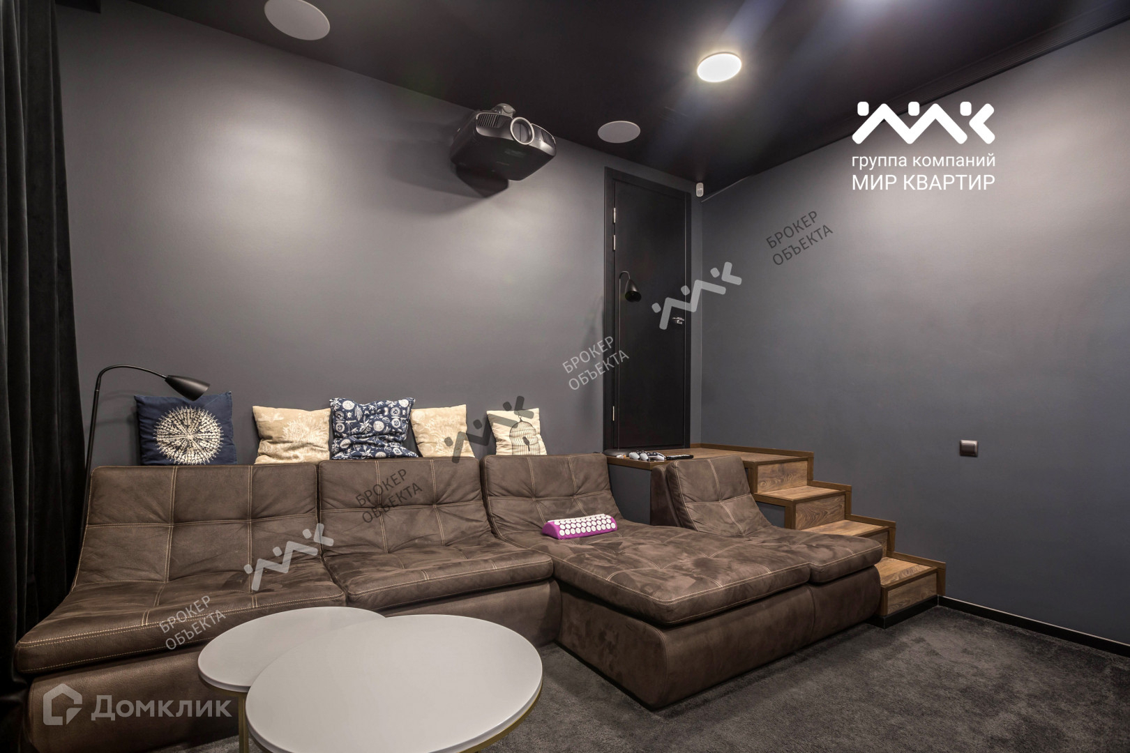 На 1 этаже дома просторный холл со вторым светом и большой кухней-гостиной с панорамными окнами. Высота потолков от 3м и выше. Отдельного внимания заслуживает зона, в которой оборудован настоящий профессиональный кинотеатр.