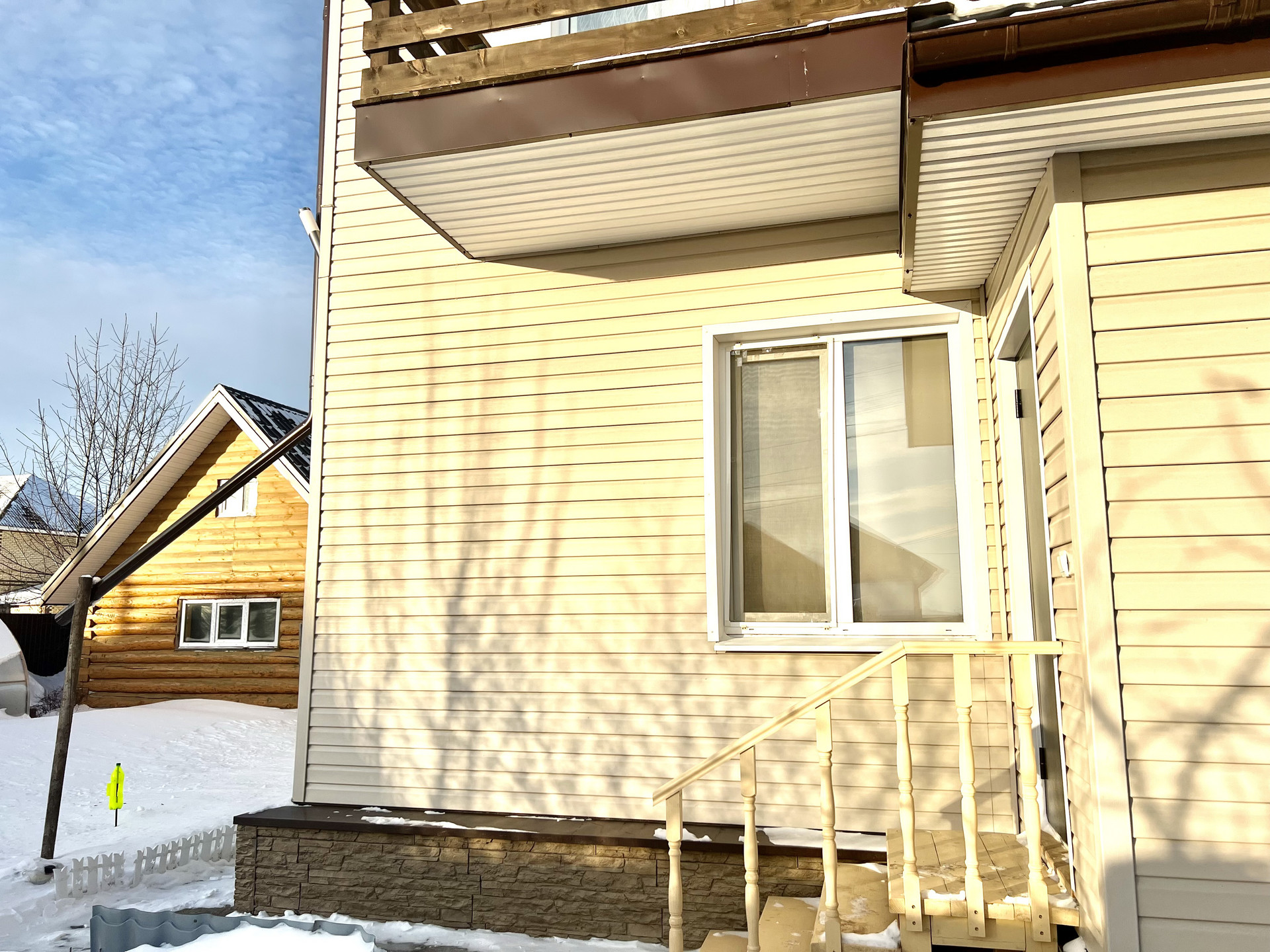Конструктив дома: фундамент- бетон, утеплен с наружи и отделан сайдингом винил "Файнбир".