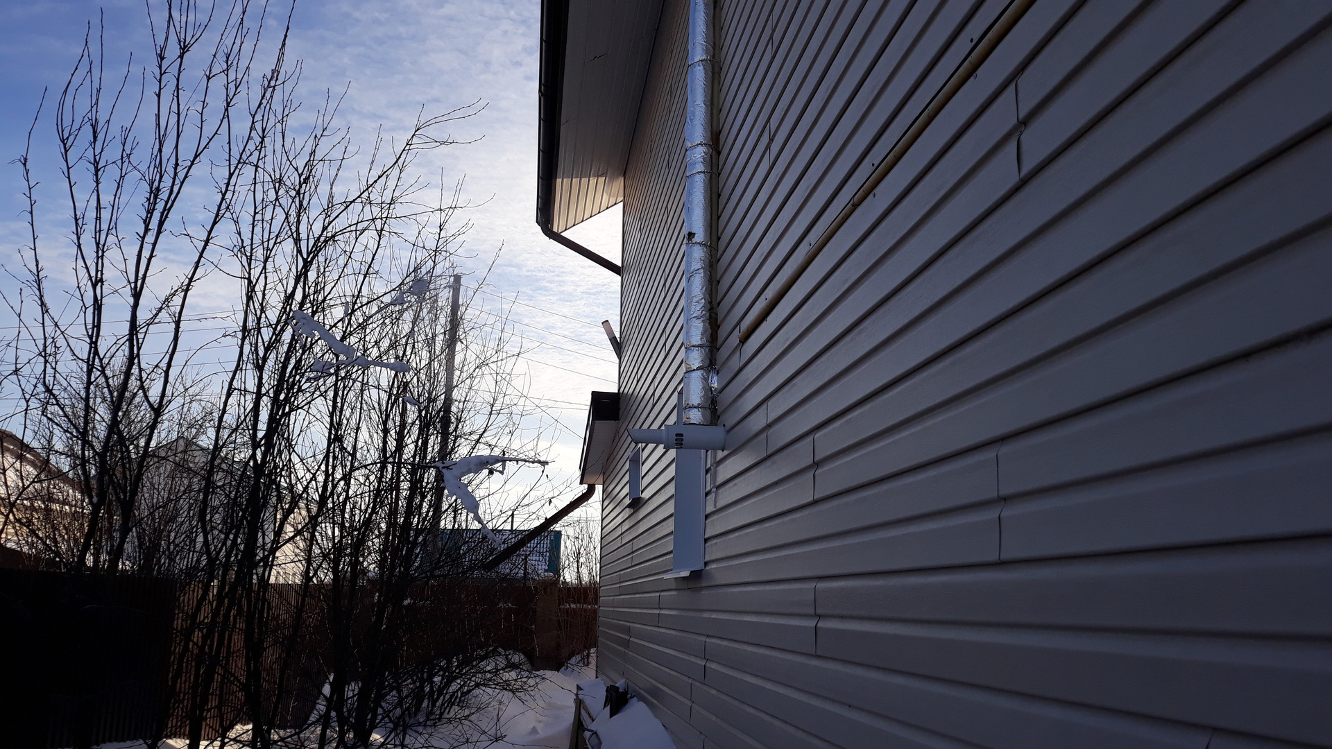 Стены- блок толщина 300мм. утеплен пеноплексом 50мм. и обшит сайдингом винил.