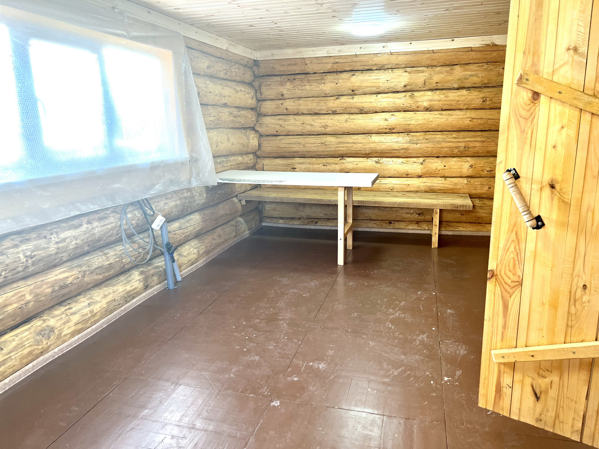 Баня 6/6м. из бревна, в комнате отдыха сделана подготовка под кухню, в предбаннике плитка и теплый пол.
