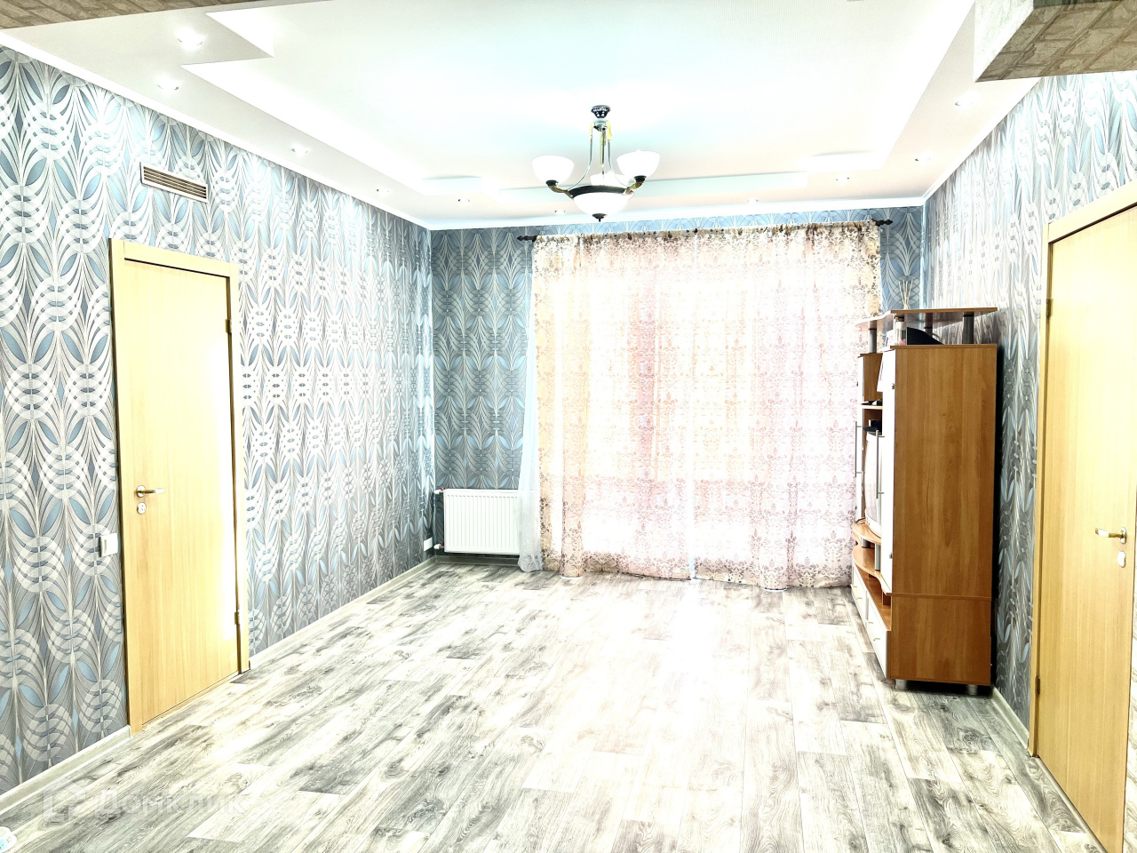 Внутренняя отделка, первый этаж: водяной теплый пол- плитка; стены- гипсокартон, обои; потолок-гипсокартон.