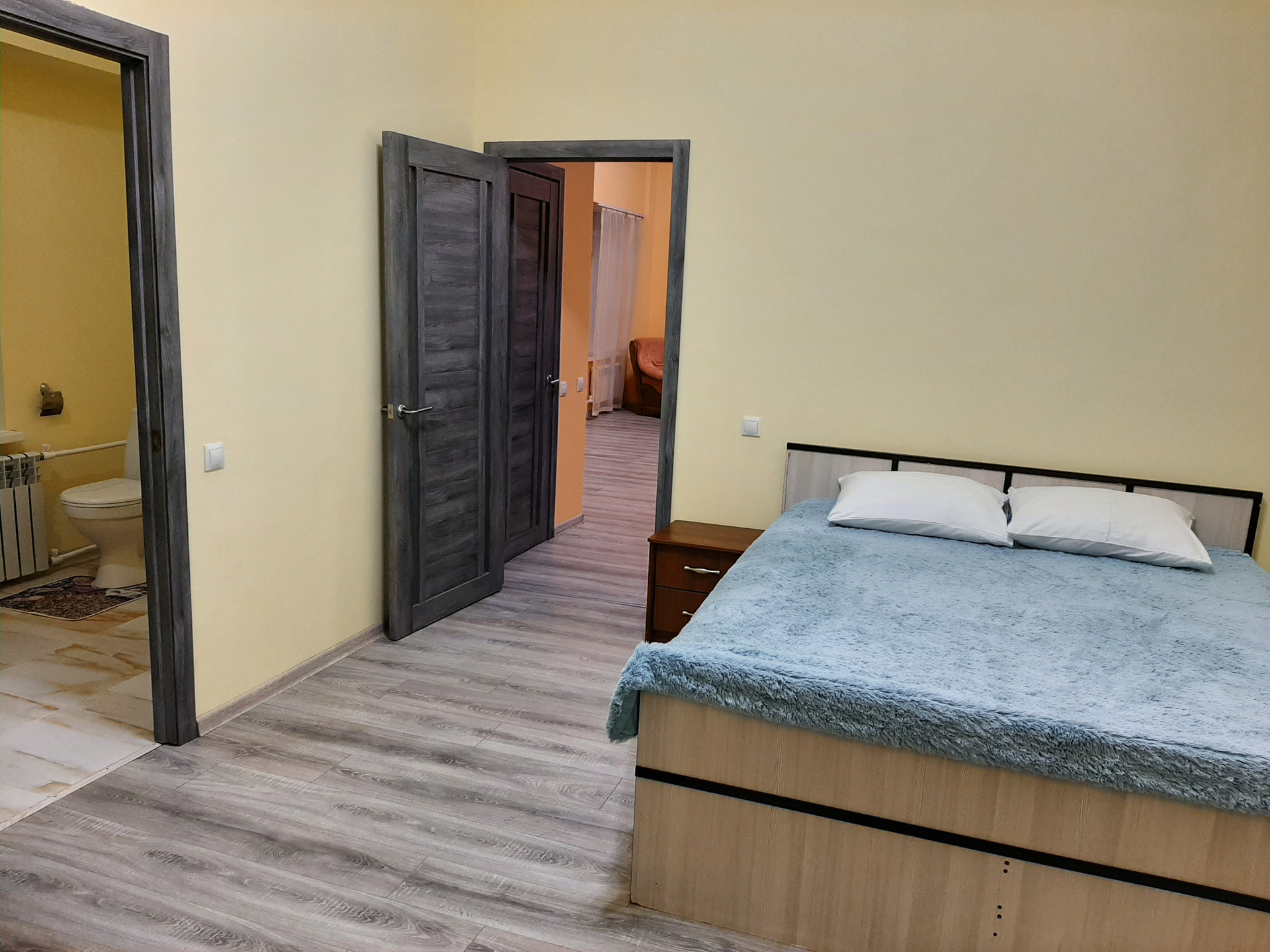 * три спальни и одна общая комната – кухня студия.