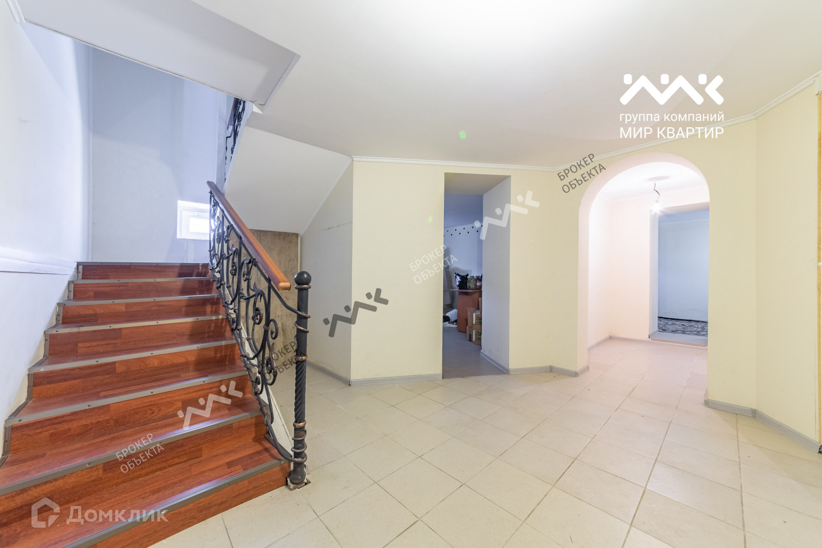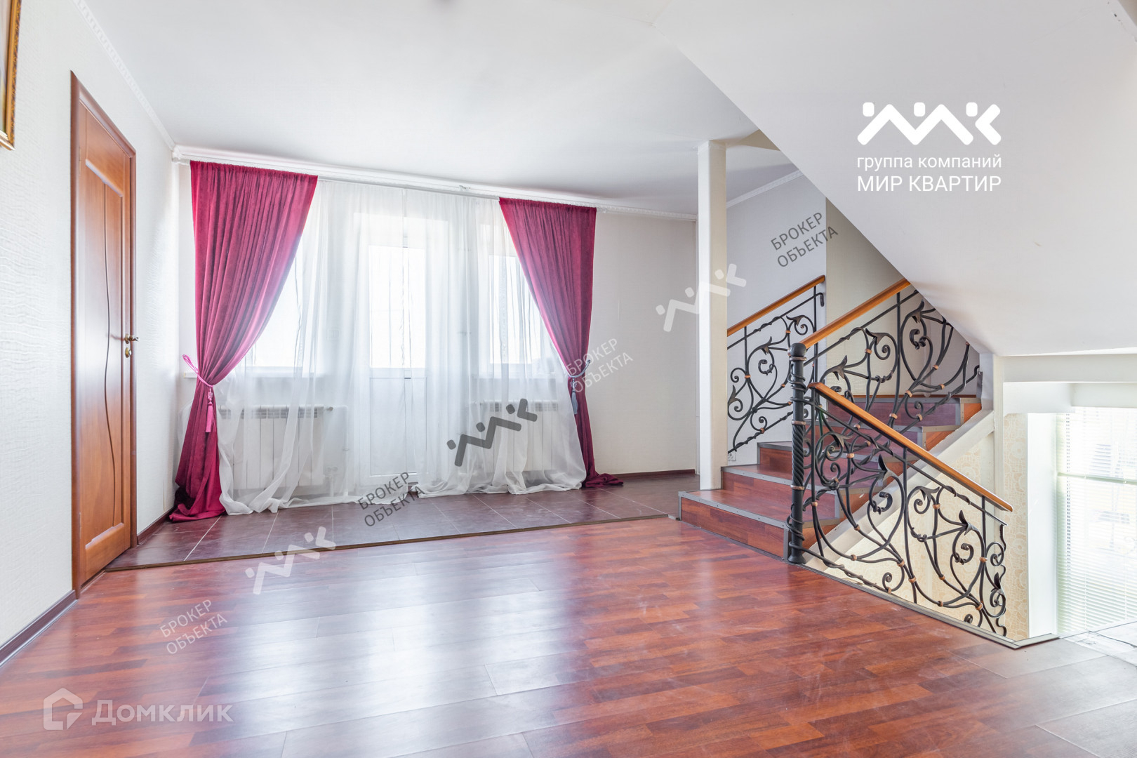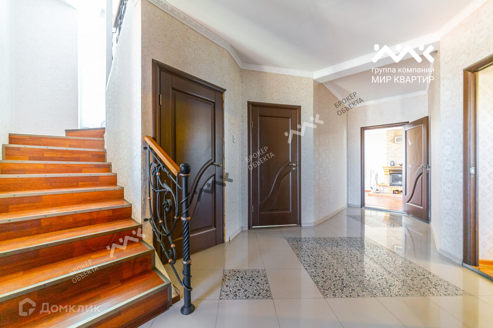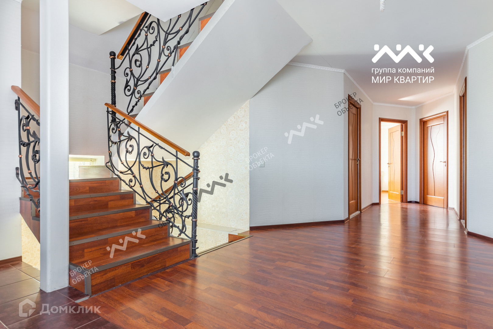 Лестница внутри дома декоративна периллами из кованого металла.