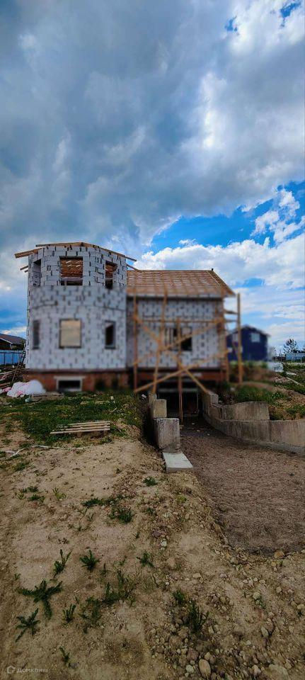 Продается дом. Фундамент построен в 2016 году. Цокольный этаж с въездом в гараж. Сам дом подняли в этом году. Подключено 15 кВт, скважина 30 метров, канализация - 3 колодца (фото на этапе стройки, сейчас все доделано). Газ вдоль дороги. Перед началом стройки в 2016 году получали разрешение на строительство, сейчас дом зарегистрирован, получен адрес. Площадь 318 кв.м. с учётом подвала. Подвал высотой 3 метра по всей площади фундамента. На участке стоит вагончик-бытовка.