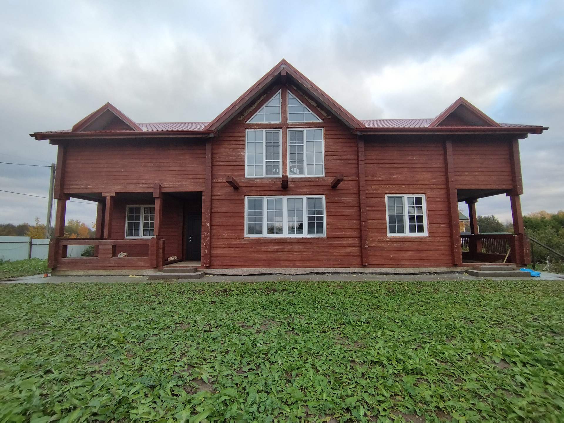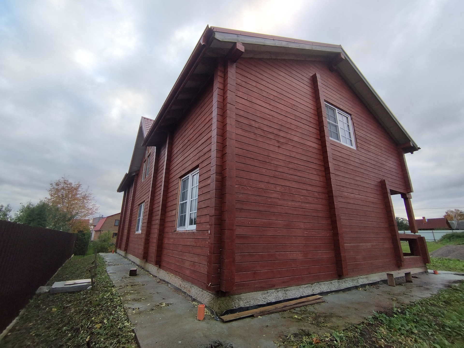 Материал стен: клееный брус 200*200, снаружи окрашен краской «Текнос»; фундамент плита + верхний ростверк; кровля: металлочерепица; установлены стеклопакеты: профиль 72 мм; выполнен дренаж вокруг дома. Коммуникации: скважина 25 м. (зеркало на 7 м.), ввод в дом закопан на 1,8 м. (есть паспорт); канализация пять колодцев (поле фильтрации); электричество 15,  КВт, по границе  ГАЗ. Общая площадь 300 кв. м. Документы на дом поданы на регистрацию. Участок 18 соток, ровный, сухой (бутовая порода), межевание сделано, огорожен забором, располагаются хоз. постройки (летний душ туалет, вагончик). Участок в собственности более пяти лет.  Асфальтированный подъезд. Соседи живут постоянно. Вся инфраструктура в шаговой доступности! До КАД 10-15 минут на машине.