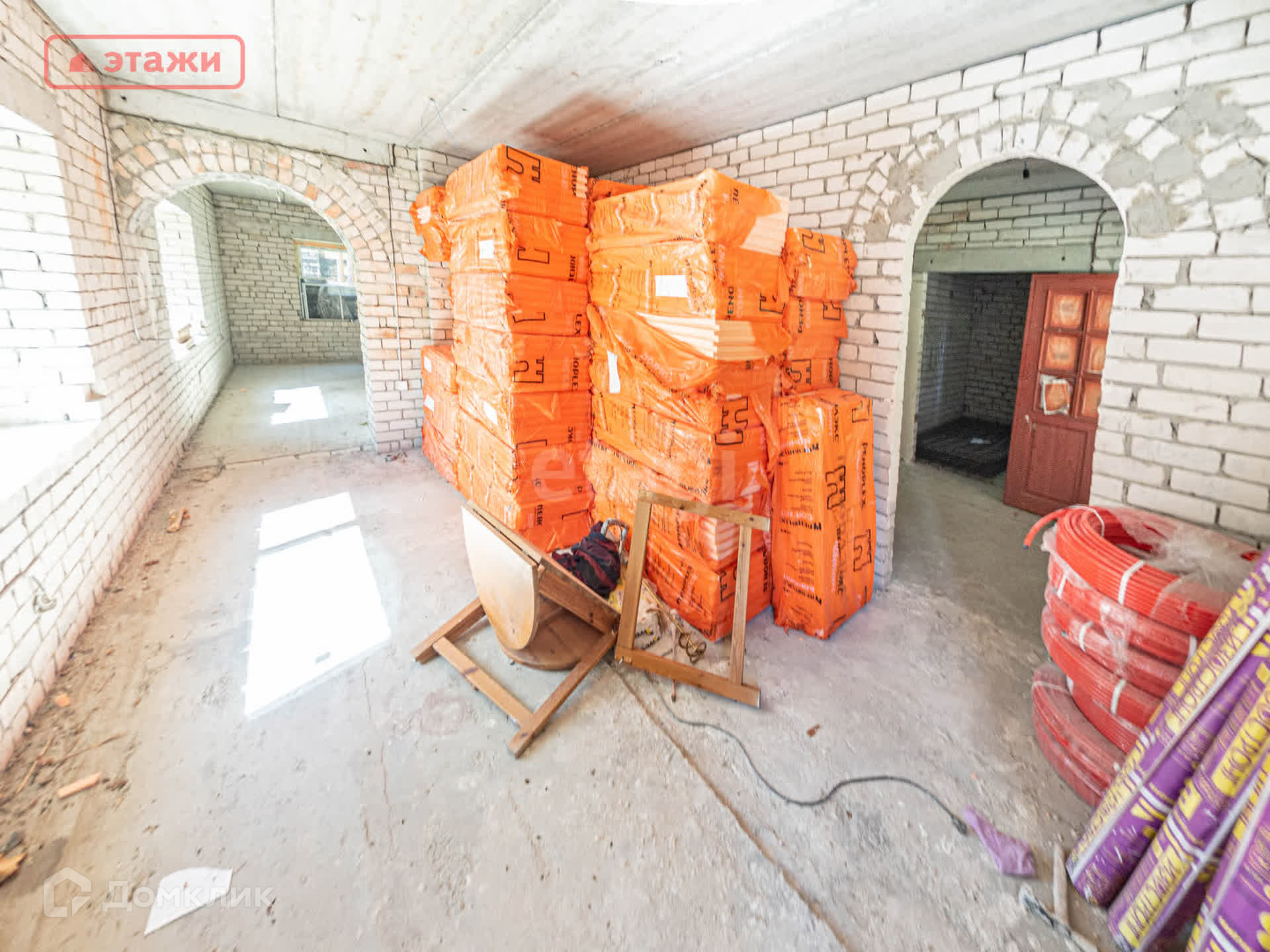 Дом построен на монолитной плите, наружные стены выполнены из кирпича, а перекрытия - из железобетонных плит. Благодаря этому дом хорошо удерживает тепло. В доме предусмотрено установка тёплых полов.
