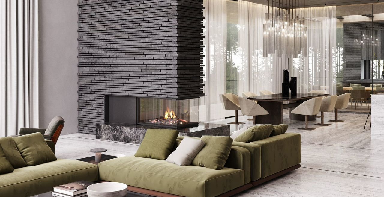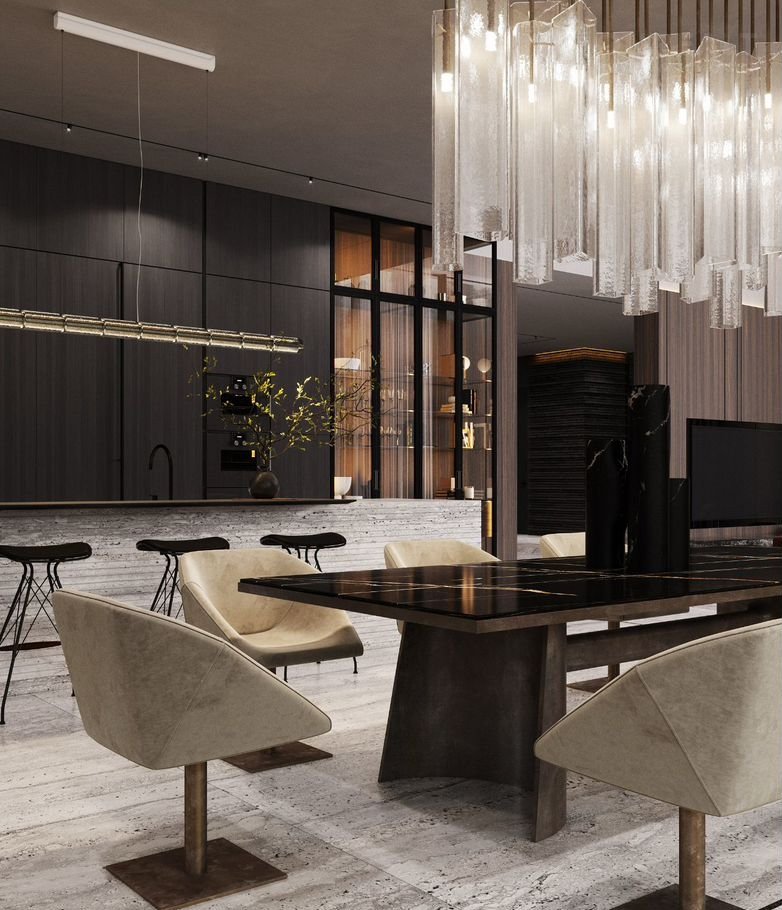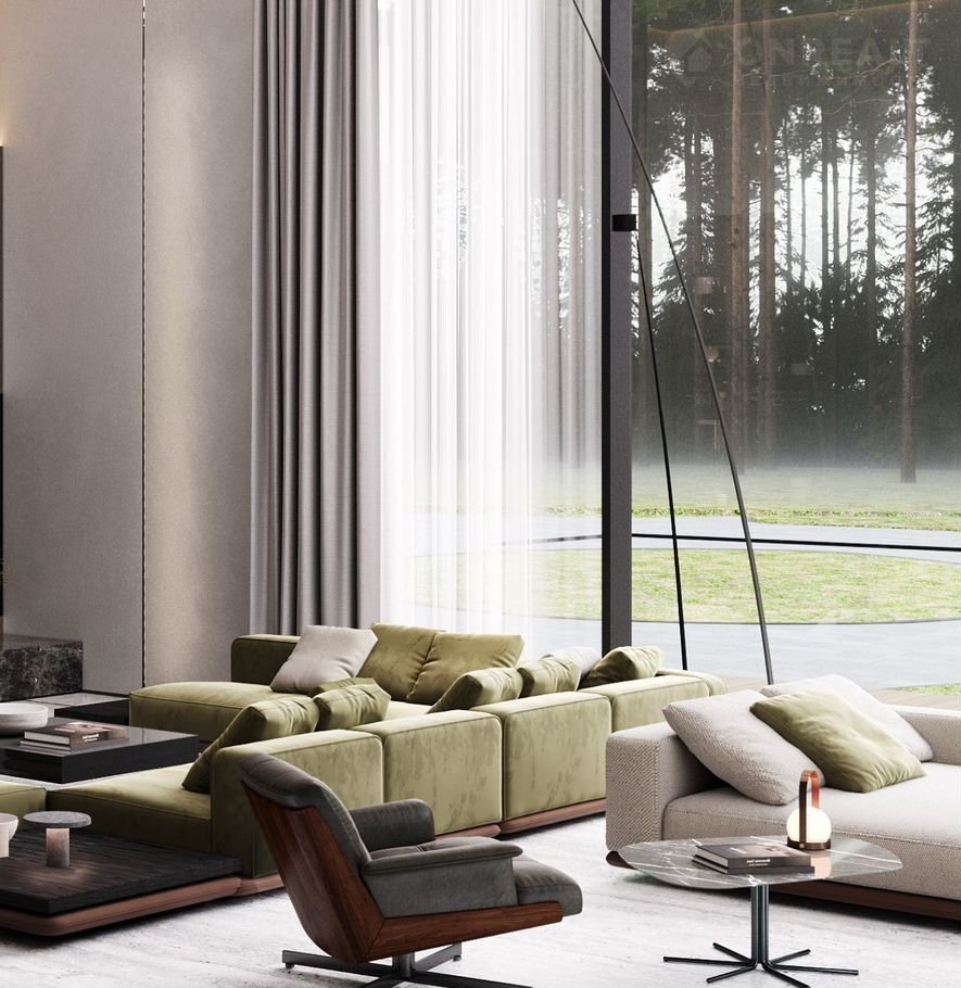 ⭐️ Основной акцент сделан на визуальной прозрачности и эффекте пустоты. Практически в каждом помещении, спроектированы панорамные окна.