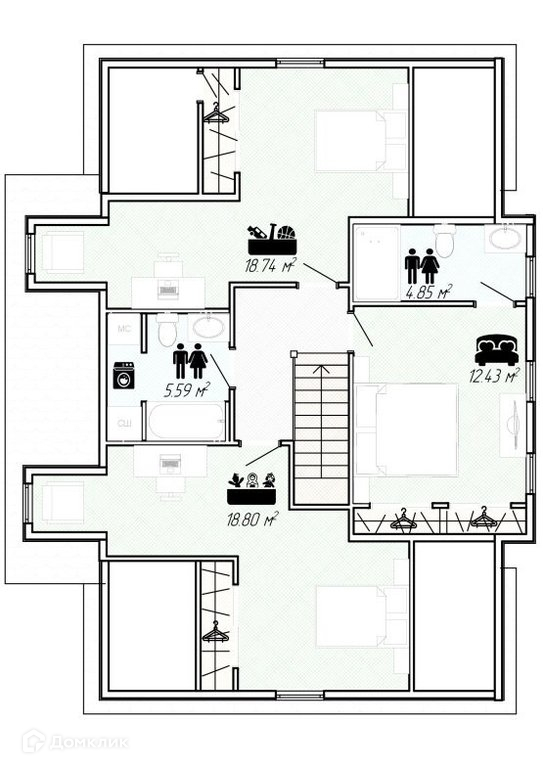 Между спальнями находиться ванная комната. Еще одна спальня на втором этаже имеет свою ванную.