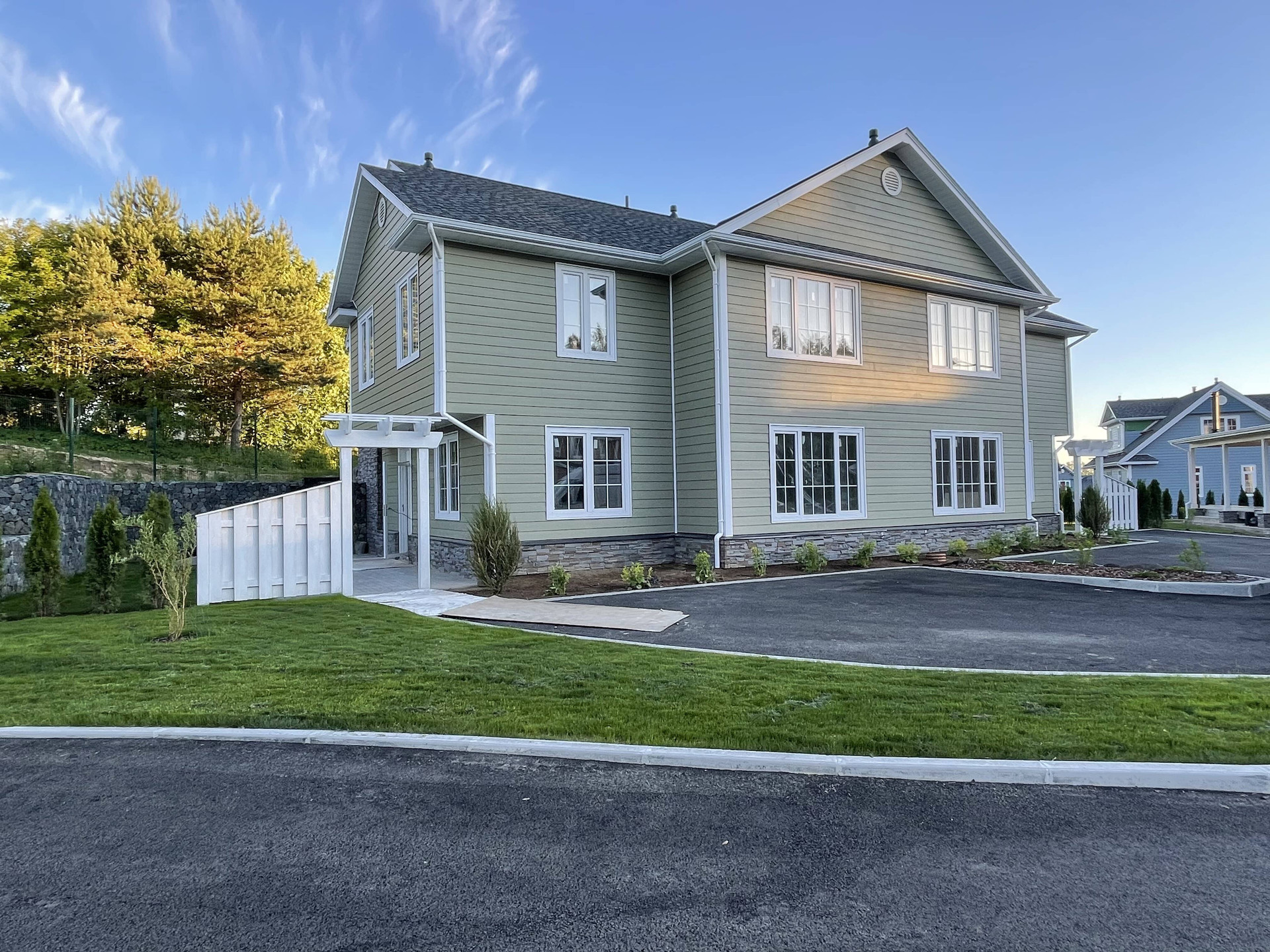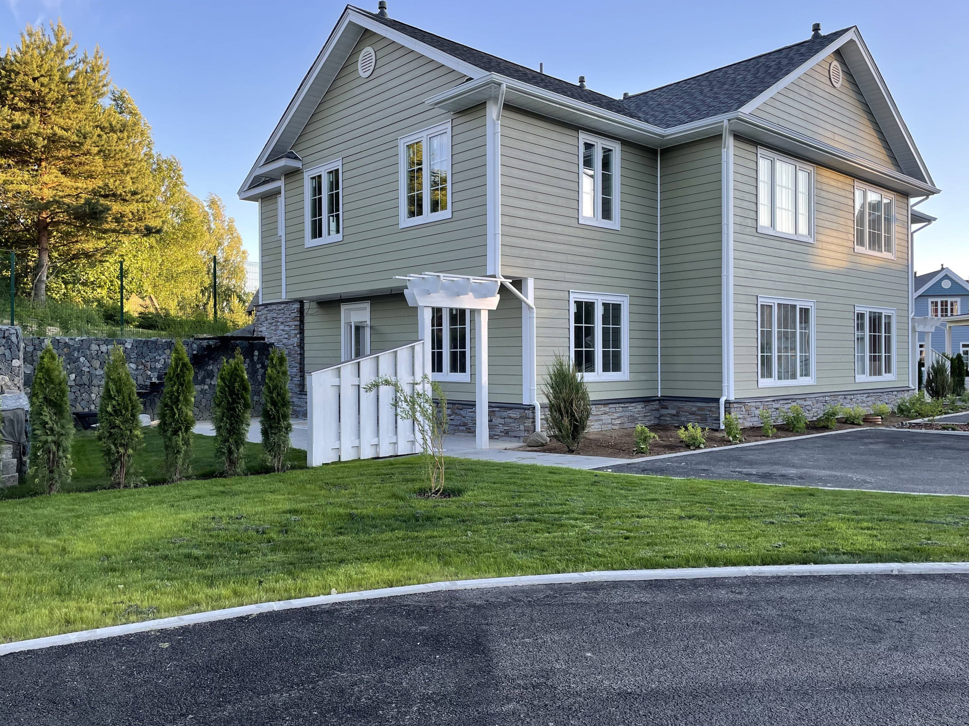 Ухоженные газоны, дороги, система видеонаблюдения и освещения на всей территории коттеджного поселка.